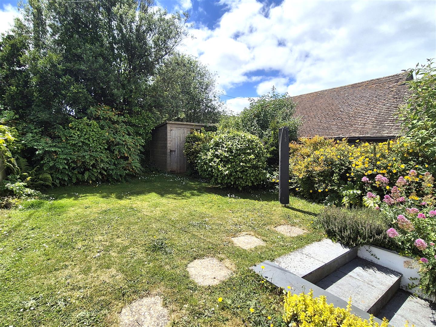 A wooden gate opens to a pathway that leads through the front garden to the main door, this is mostly gravel edged with mature shrubs and plants. A shared driveway gives access to a neighbouring property provides off road parking for two cars. The property enjoys a secure back garden with patio and shed. The rear garden accessed from the kitchen or from a wooden side gate. There is a large, patio sitting out area ideal for al fresco dining or simply relaxing in the sun. Steps lead up to a lawned garden bordered with mature shrubs and wooden fence.