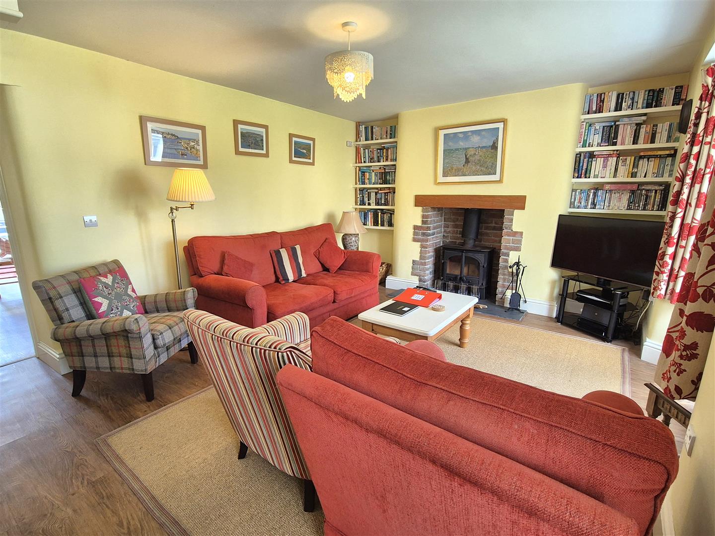 The front door opens into a warm and welcoming sitting room full of period features. Your eyes are immediately drawn to the feature fire place, home to a log burner sat on a slate hearth, great for those chillier winter evenings. A bay window lets in plenty of light and a staircase rises to the first floor.