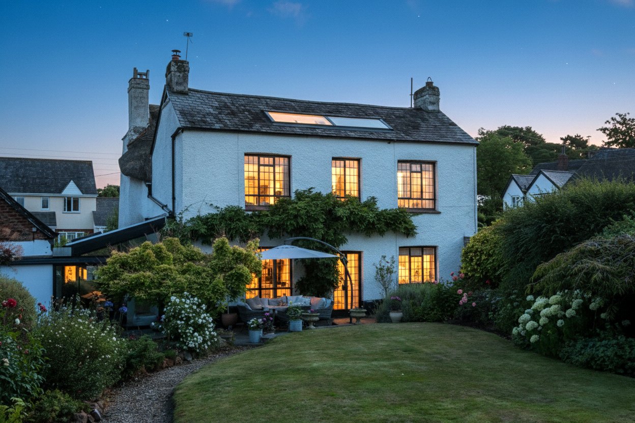 The Old Smithy is a spacious individual Grade II listed detached cottage situated in the heart of the popular village of Poltimore, approximately 5 miles northeast of Exeter. Dating back to the 17th century with 19th century additions, the original part of the cottage is thatched with the more recent section under a slate roof.