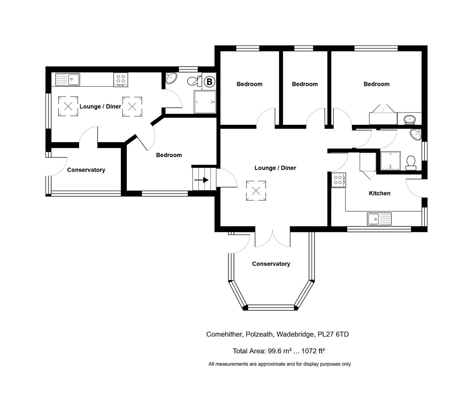 The accommodation of Hithertwo comprises the following with all measurements being approximate:-