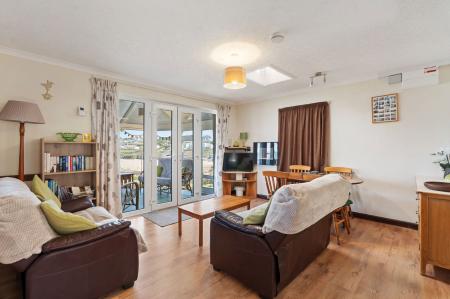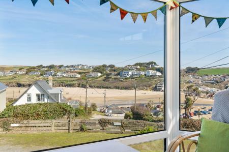 Polycarbonate roofing, double glazed UPVC with various opening windows and French door to garden framing absolutely magnificent views towards the beach, Pentire Head and the ocean.