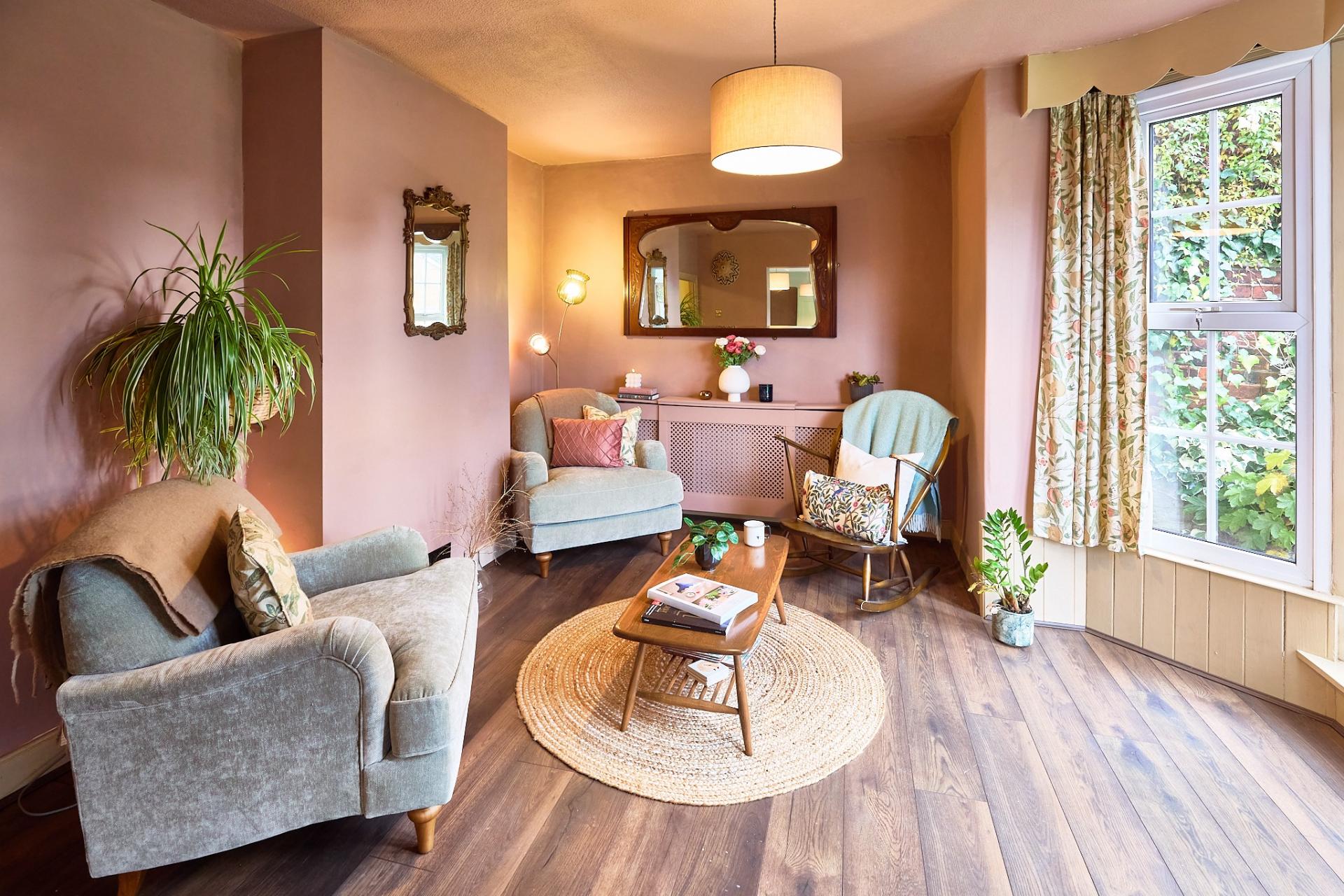 - Lounge with Elegant Décor, Bay Window and Feature Stove