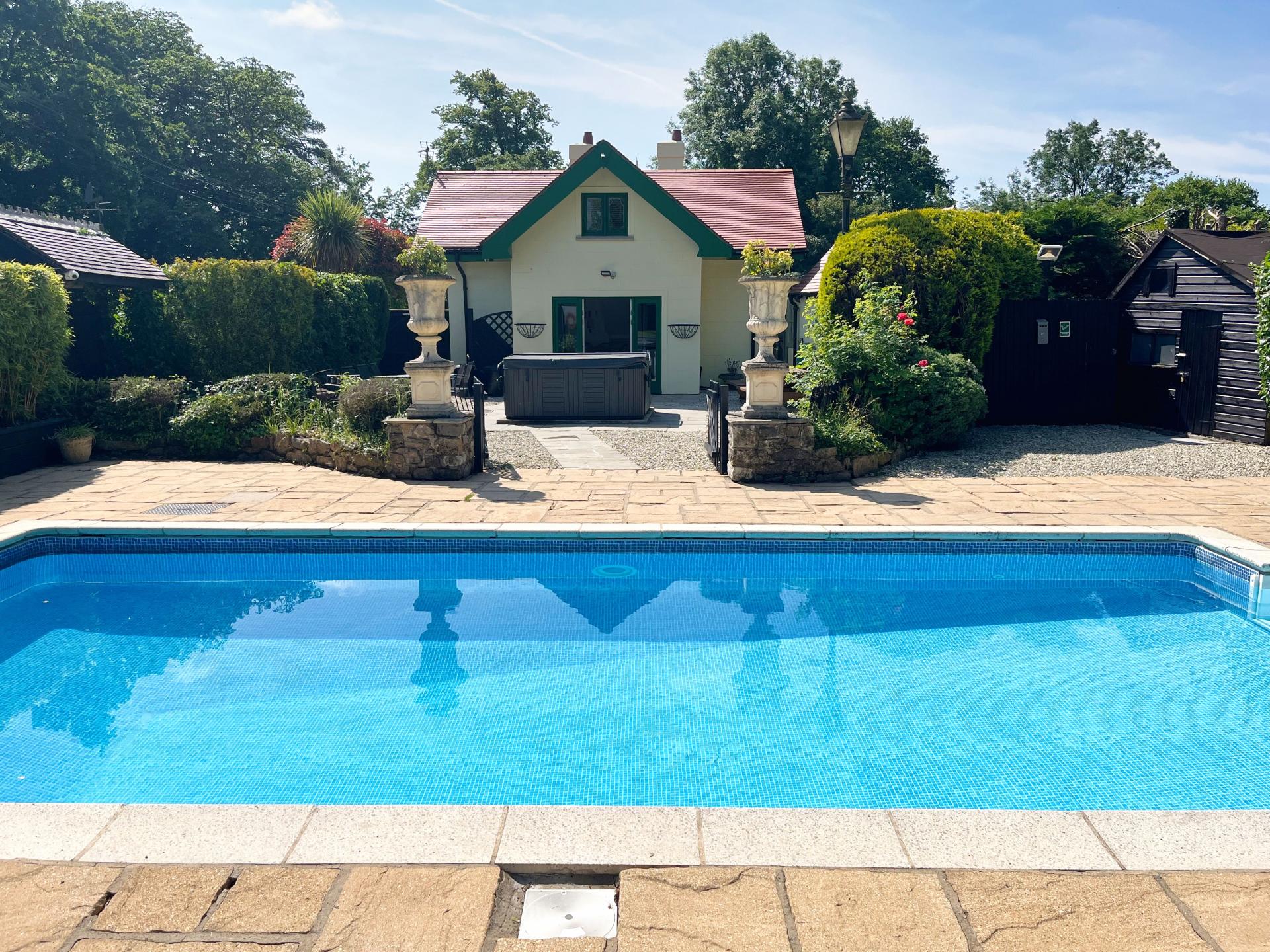 - Beautifully maintained mature gardens which includes; courtyard area with hot tub, lawns, outdoor swimming pool and extensive secure parking.