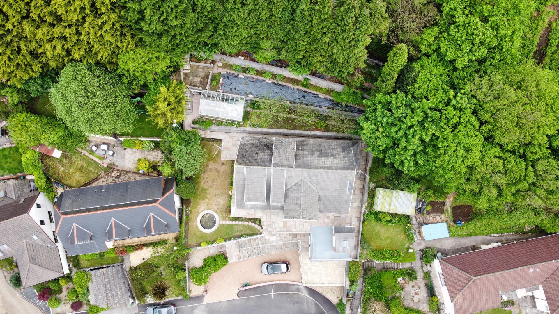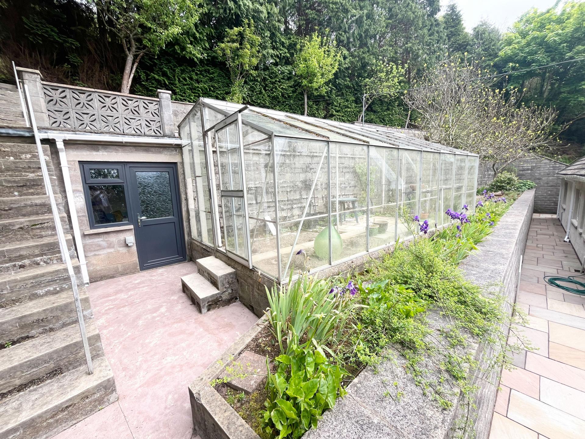 - Tiered tree lined gardens and large greenhouse