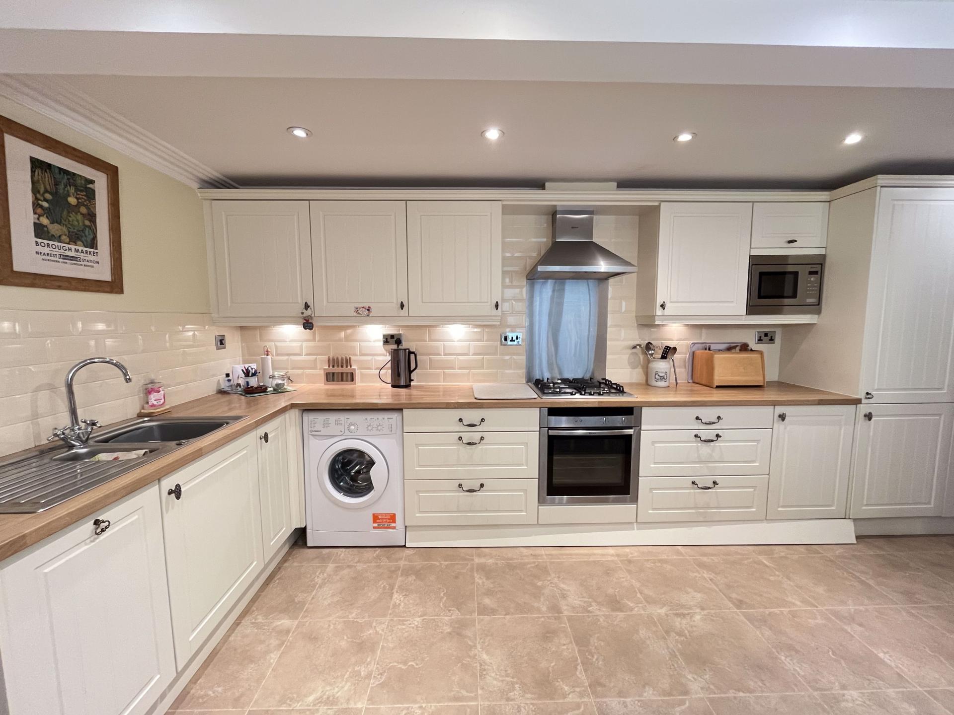 - Entrance hall with WC just off, sizeable sitting room, kitchen/dining/entertainment space and two double bedrooms both with an en-suite shower room