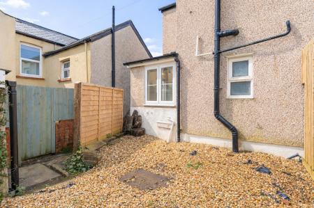 To the rear of the property is a courtyard-style garden, providing a low-maintenance outdoor space with room for seating, ideal for enjoying the warmer months.