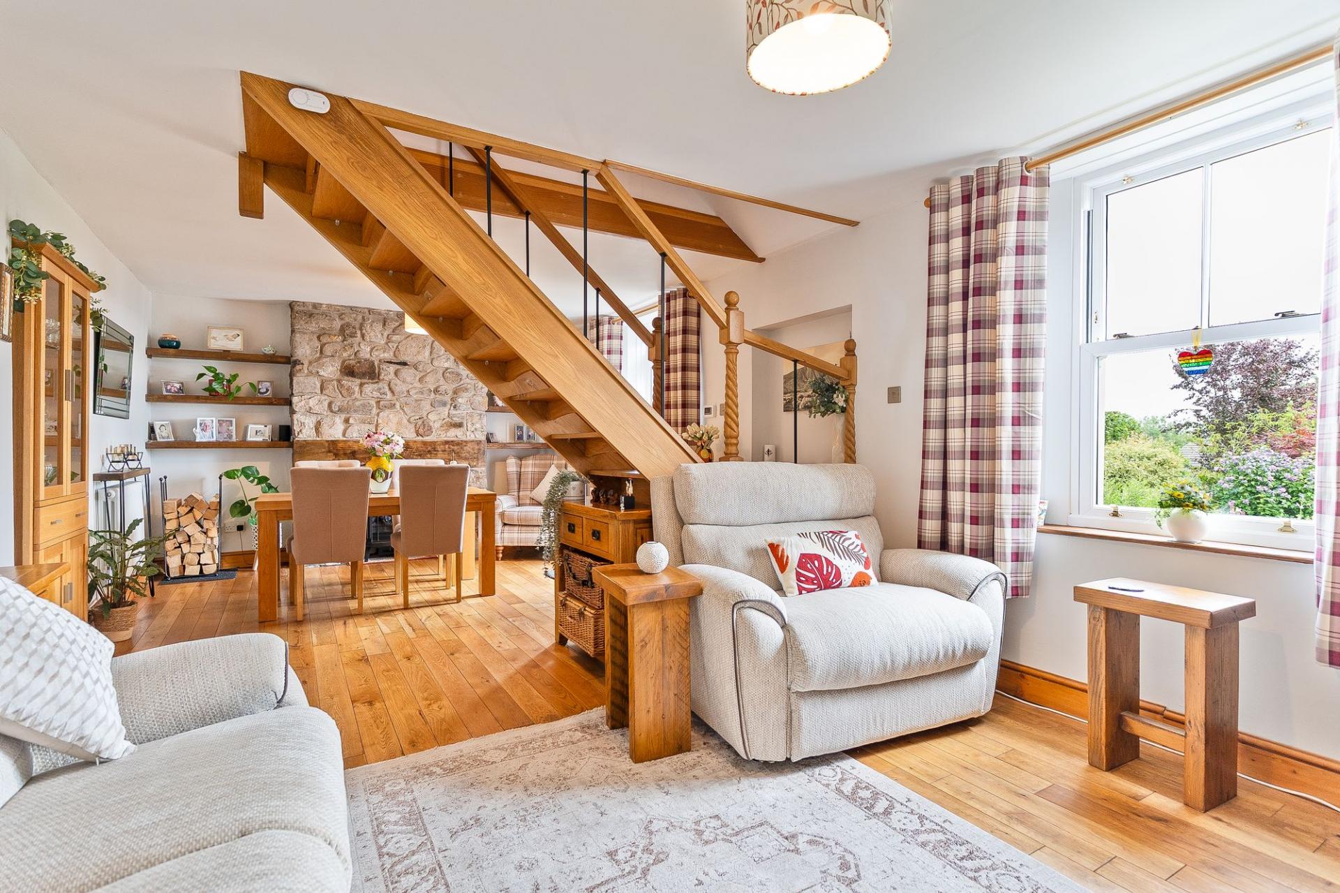To the front of the property is a large, gated driveway offering secure off-road parking for multiple vehicles. To the rear, a beautifully maintained garden provides a private retreat, enjoying far-reaching views over the surrounding landscape. With a combination of established planting, lawned areas, and thoughtfully designed seating spaces, this outdoor haven is ideal for both entertaining and quiet enjoyment throughout the year.