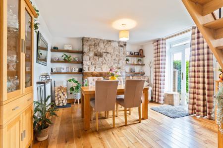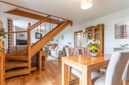 Upon entering the property, you are welcomed into a light and spacious entrance hall that offers a practical downstairs toilet and cloakroom — ideal for storing coats, shoes, and everyday essentials. The modern kitchen lies just off the hallway and is fitted with ample wall and base units, providing generous storage and worktop space. Flowing from the kitchen is the heart of the home: a bright and airy open-plan lounge/dining area, complete with charming feature fireplaces, a beautiful open staircase, and plenty of space for both relaxation and entertaining.