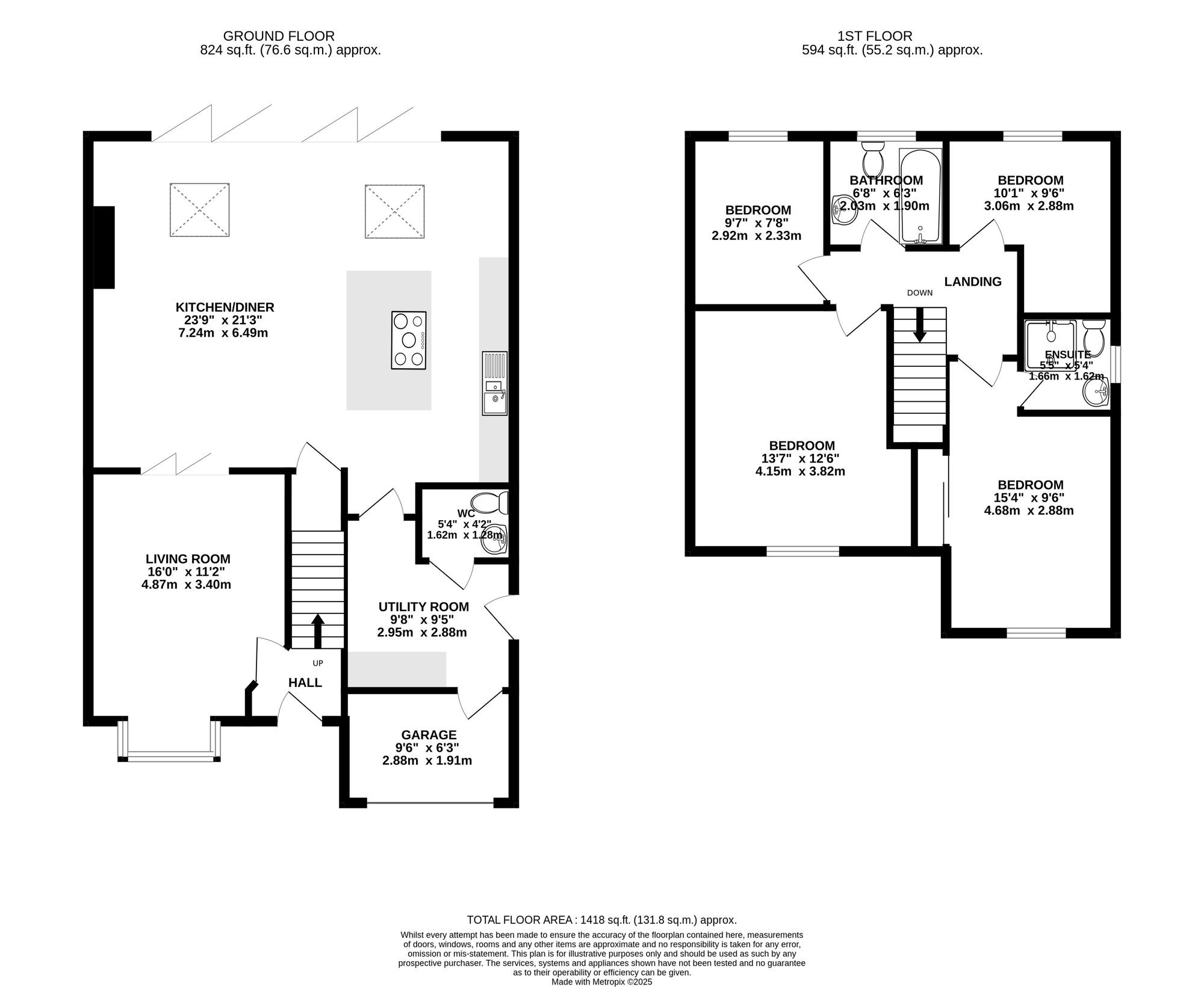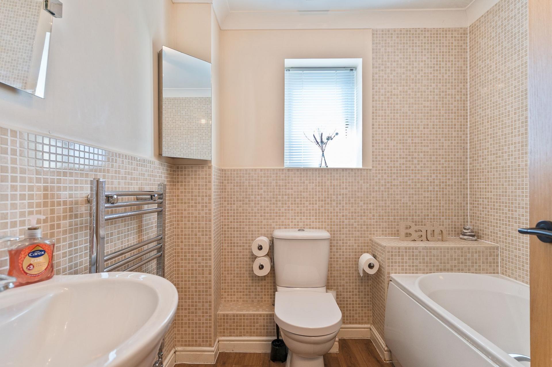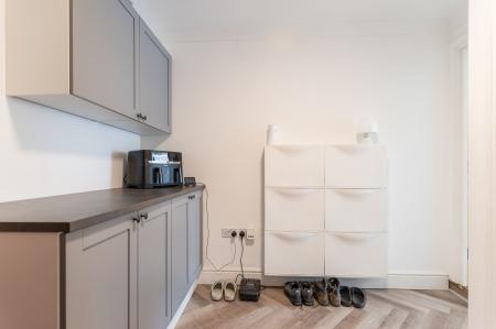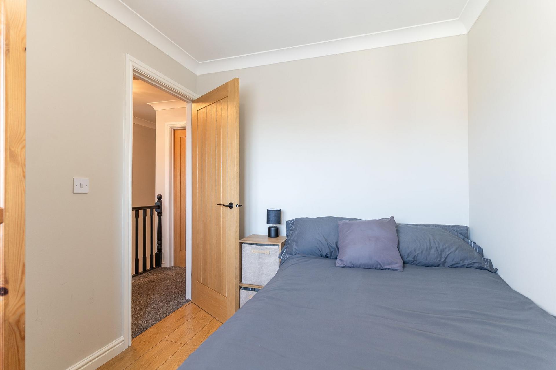 The first floor accommodates four generously sized double bedrooms, all of which can comfortably support a double bed and additional furniture. The primary bedroom benefits from built-in storage and a private en-suite shower room. A well-appointed family bathroom serves the remaining bedrooms, finished to a high standard with modern fittings.