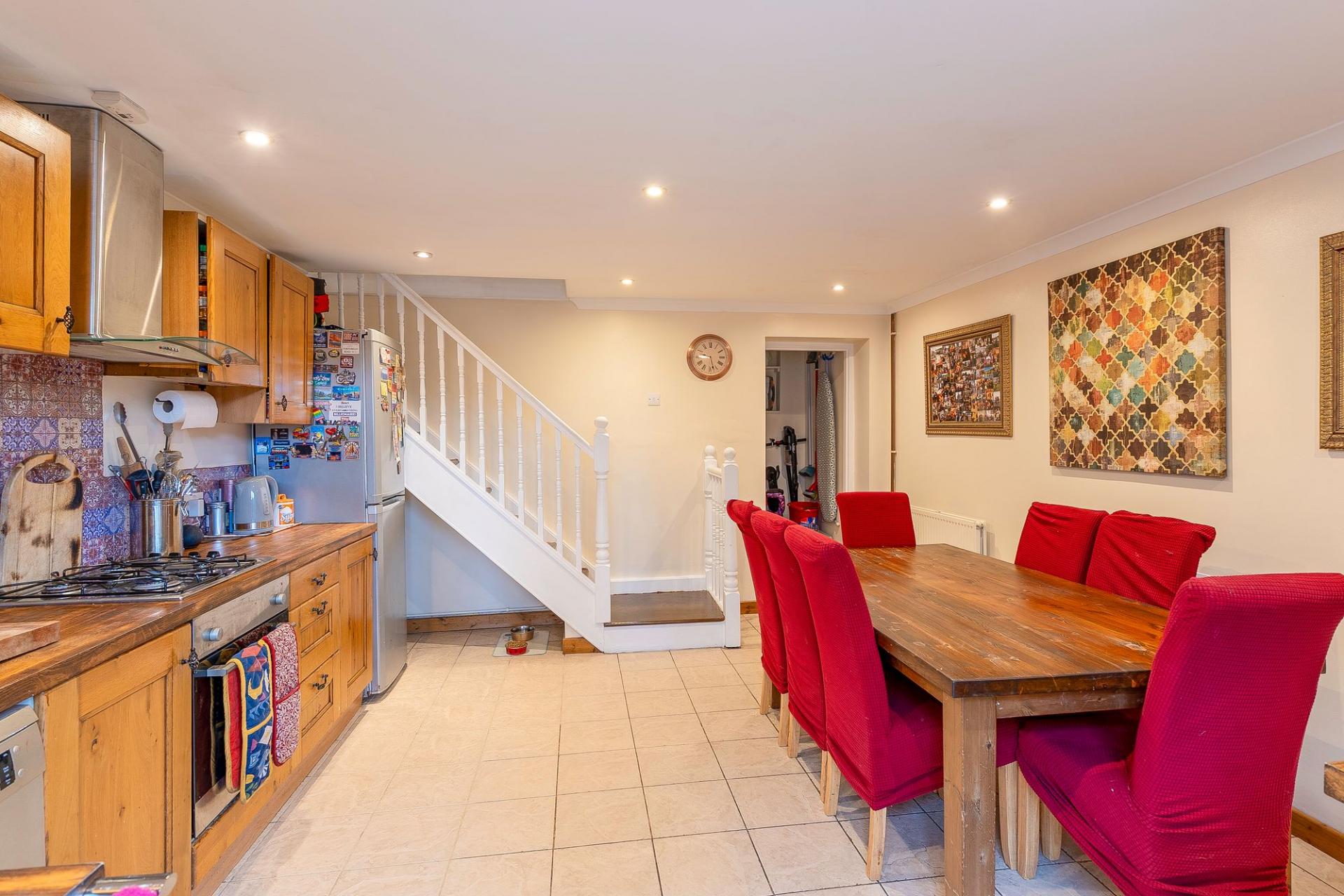 The kitchen/diner is situated on the basement/garden level, providing a fantastic family space that benefits from natural light. With plenty of room for dining, this area is perfect for family meals and social gatherings. Patio doors lead out to the rear garden, creating a seamless connection between the indoors and outdoors.