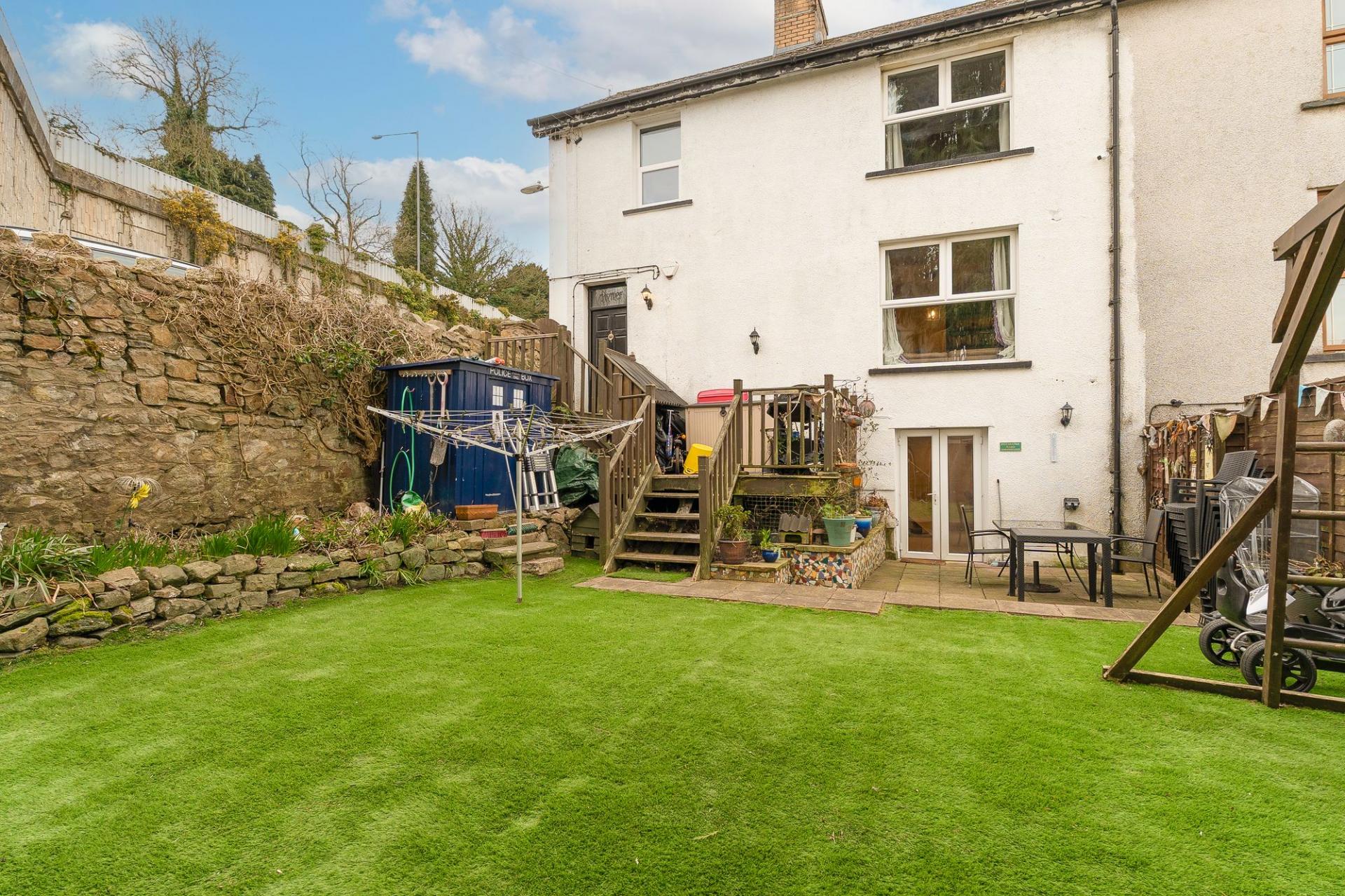 The rear garden is a real highlight of the property, offering a large artificial lawn and a patio area, making it a low-maintenance space that’s perfect for enjoying the outdoors without the hassle of upkeep. Whether you’re hosting a summer barbecue or simply relaxing in the garden, this space offers endless possibilities.