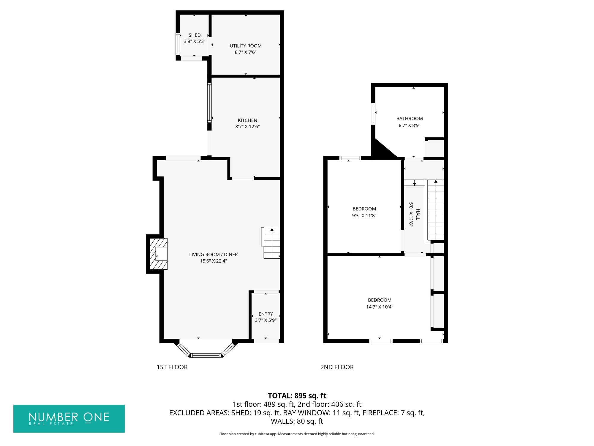 We enter this beautiful home through the front, where we are welcomed in to the impressively sized reception room, boasting wood effect flooring, a charming brick fireplace, and bay windows to light up the room. This spacious living room has plenty of room to double up as the lounge and dining area, highlighting the perfect space to relaxing, dining and entertaining. At the rear of the house we have the kitchen, which features a sleek, glossy design, with numerous storage fixtures and room for appliances - both practical and stylish. To the first floor we have two spacious bedrooms which are both bright and airy, sharing the bathroom from the hallway, which is fitted with a bath suite and overhead shower.