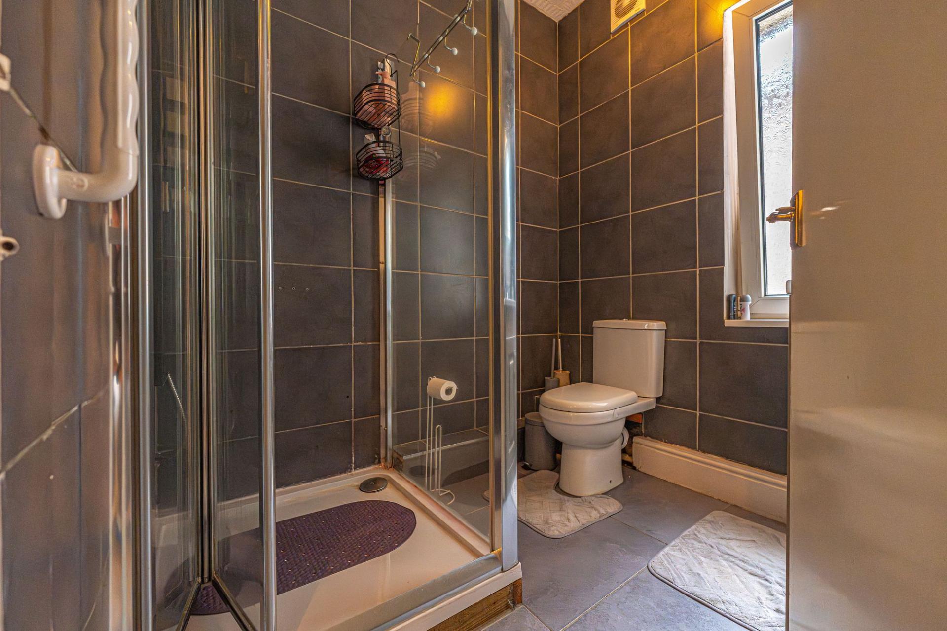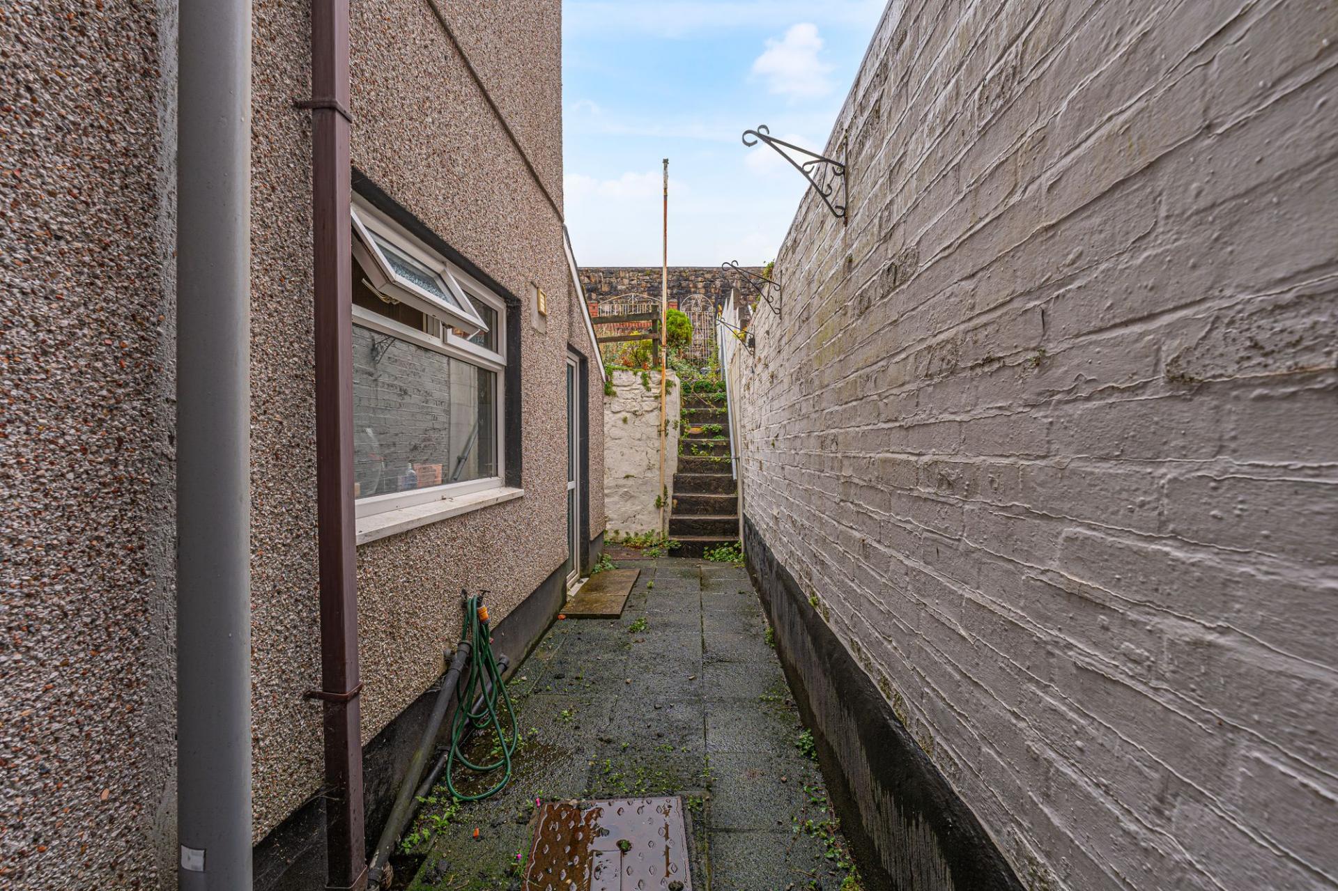 Stepping outside we have a large secluded patio connected to the house, with steps up to a pebble stone garden, which is great for relaxing in the fresh air, as well as providing a great opportunity for future development. The garden also features a gate to a pathway running alongside the rear of the terrace, highlighting an alternative entry point to the property.