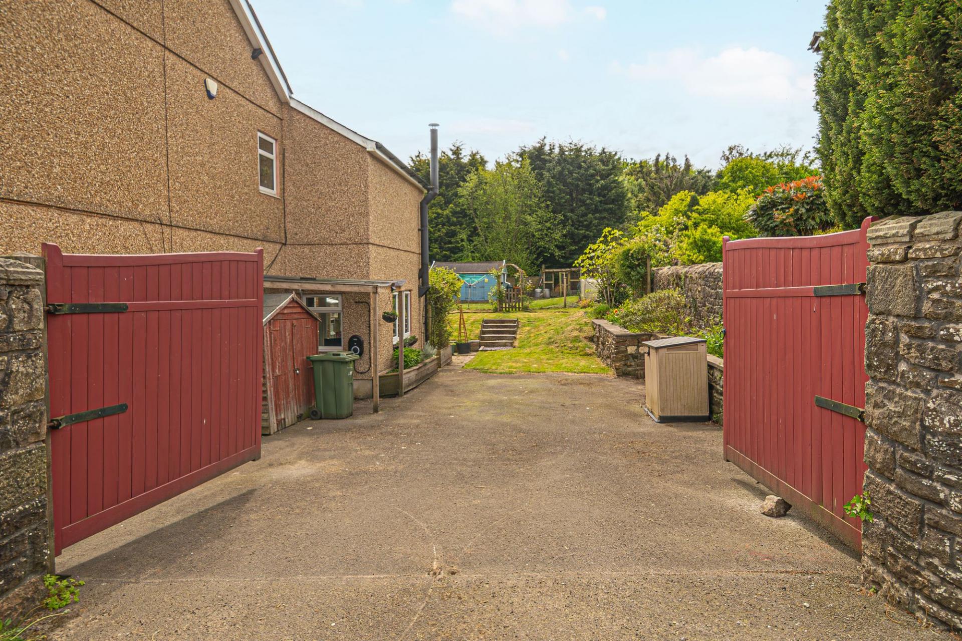 Stepping outside we can find the incredible rear garden, which is fully enclosed and positioned on a generous corner plot, with a huge grass lawn stretching away from the property to offer an abundance of space for relaxing in the sunshine, and entertaining a large host of guests. Alongside the plentiful space, the garden features a stunning greenhouse, a small patio, a chicken coop, a sizeable vegetable patch, and a large wooden cabin - the latter of which is fitted with insulation and electricity, and is currently used as a workshop. This superb structure is perfect for conversion into a workshop, a games room or a home office- and is sure to enhance garden parties. At the side of the property we can also find a large gated driveway, which provides secure parking for around 3-4 vehicles, with a useful EV charger available too.