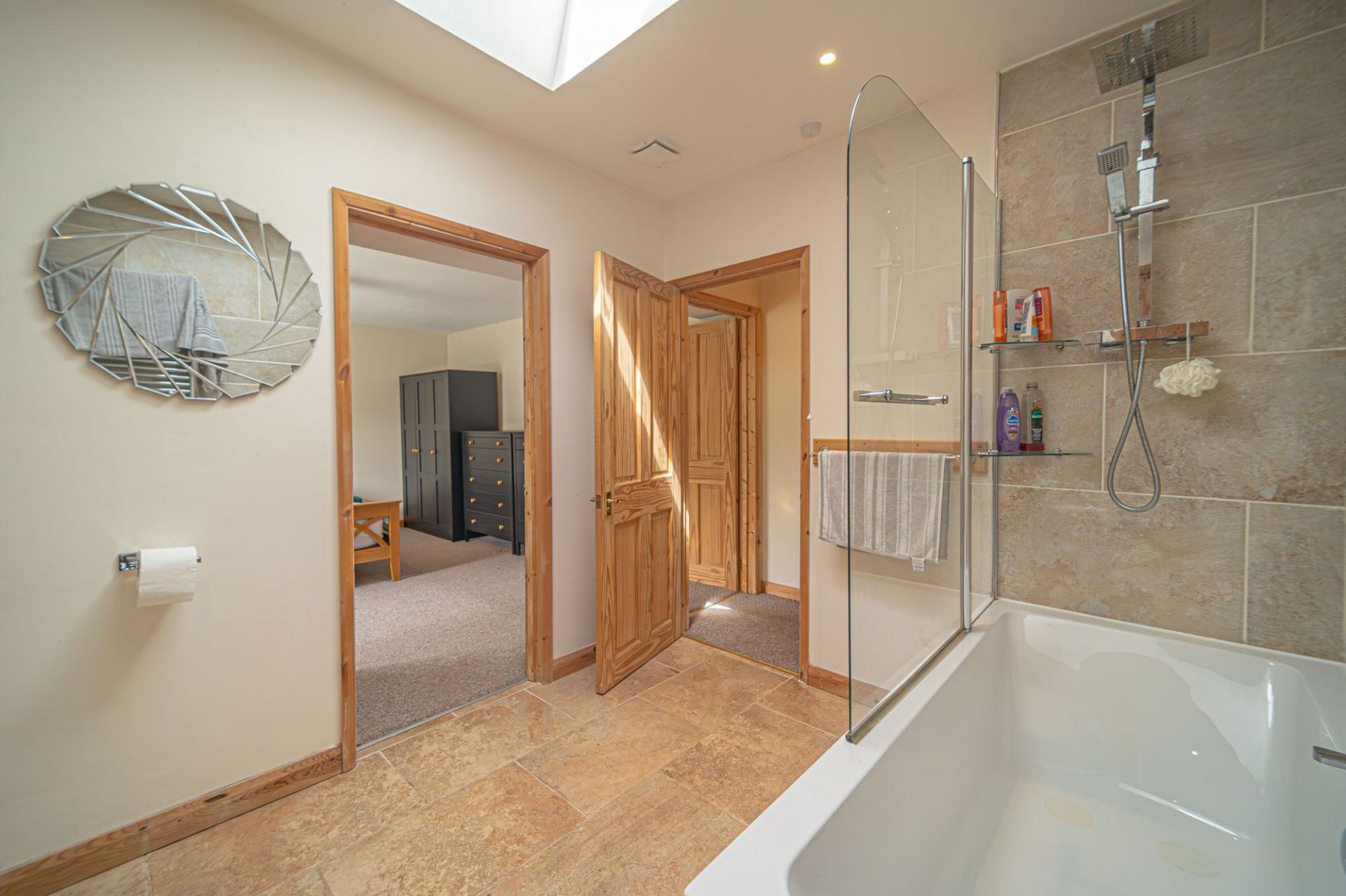 Ascending upstairs we can find the first three bedrooms, which are all generously sized double rooms, with the master bedroom being of a superior size as well as connecting directly to the Jack and Jill bathroom, which features a bath suite, overhead shower and an airing cupboard. The bathroom is also accessible from the hallway, where further storage can be utilised, and another staircase to the top floor.
