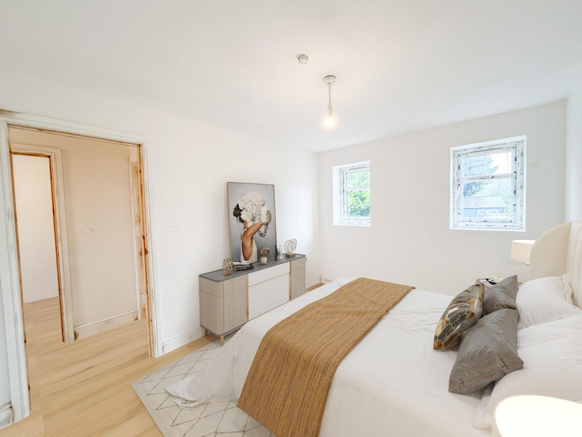 To the first floor there are two bedrooms, both of which are double and a bathroom. Similarly, the bathroom can be adapted, with either a bath suite or shower. 10% deposit required.