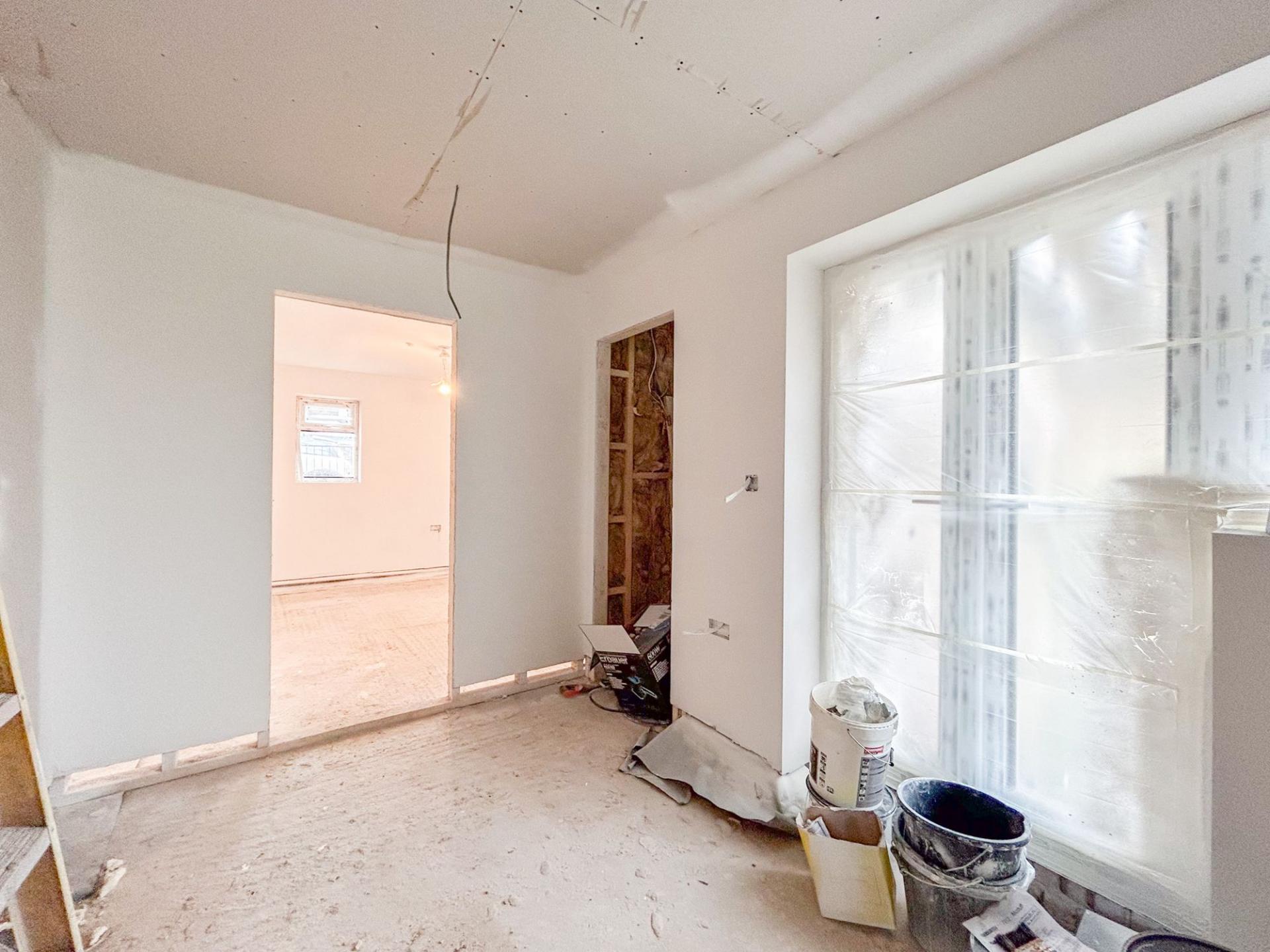 On the ground floor there is an open plan lounge/dining room to the front of the property and kitchen to the rear. The design is yet to be completed, allowing the decorative elements to be personalised and tailored to you. The garden will be landscaped, while a driveway to the side provides off road parking. Underfloor heating warms both the ground and first floor, while everything else is naturally brand new including the wiring, boiler, and relevant fixtures and fittings. The kitchen will provide space for utilities such as washing machine and fridge freezer and include a fan assisted oven and induction hob.