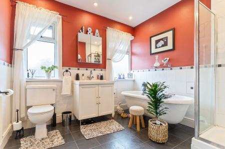 Upstairs, the property continues to impress with three spacious double bedrooms, each offering a peaceful and comfortable retreat. The impressive family bathroom is beautifully appointed and features both a freestanding roll-top bath and a separate walk-in shower, blending luxurious touches with everyday practicality.
