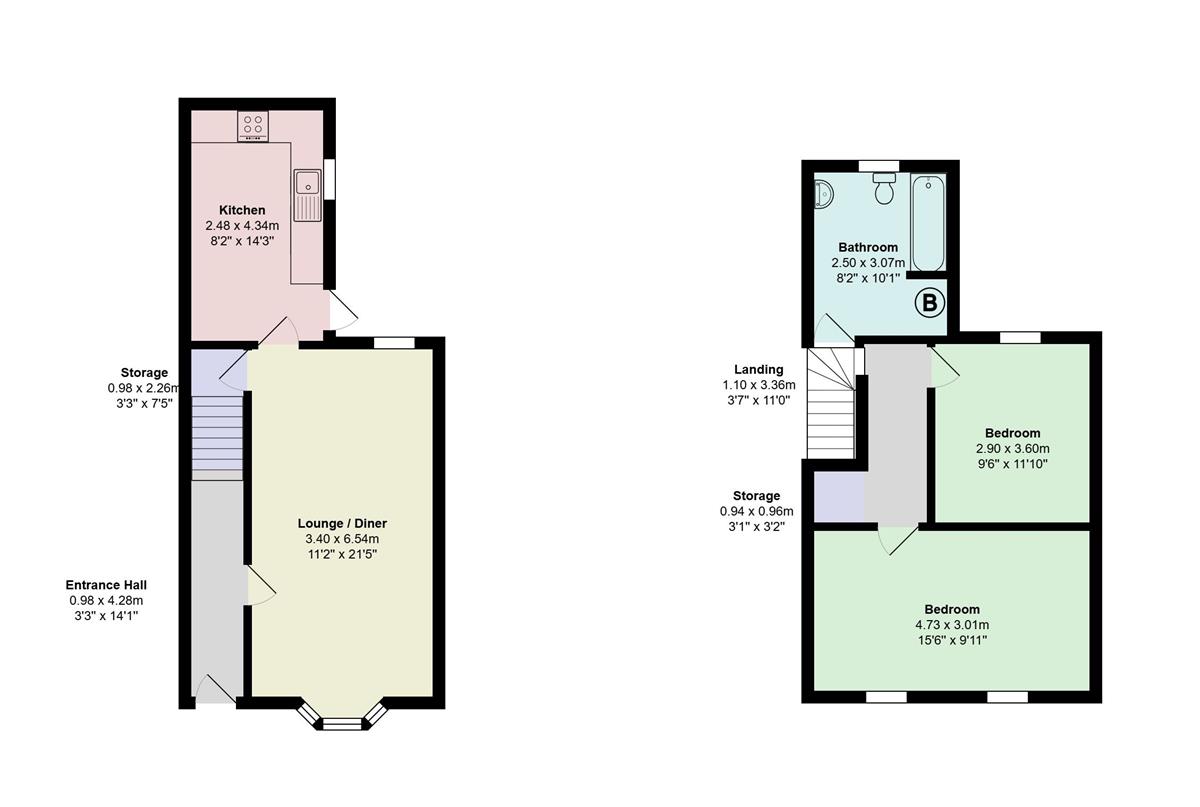 Bedroom 2 w: 4.73m x l: 3.01m x h: 2.5m (w: 15' 6" x l: 9' 11" x h: 8' 2")