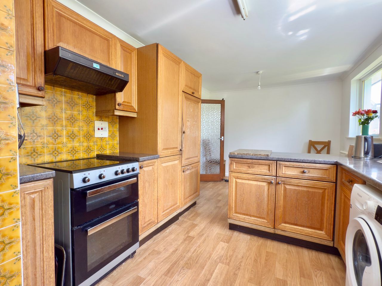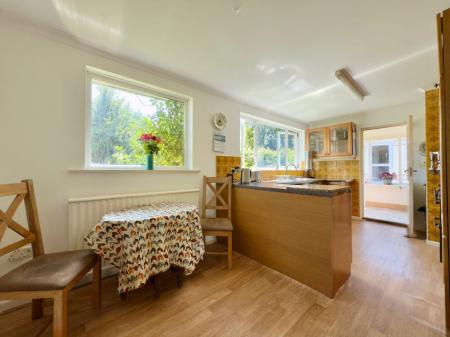 The front door comes into a small porch and into main hallway. There is a double aspect sitting room to the front and at the rear is the kitchen dining room which looks out over the large rear garden. Most of the property has double glazed UPVC windows but there is a lean to porch off the kitchen, which has single glazed wooden windows as does a side garage window. Most of the property is under a pitched roof with the garage and part of the kitchen under a flat roof which was fibre glassed about 6 years ago and in good condition. Central heating is from an oil boiler in the garage and there are solar panels helping with electricity costs.