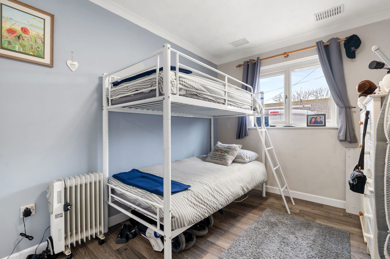 There is parking for up to three cars in front of the bungalow and a large secure metal store at the side of the property the current vendor uses to store his motorbike.