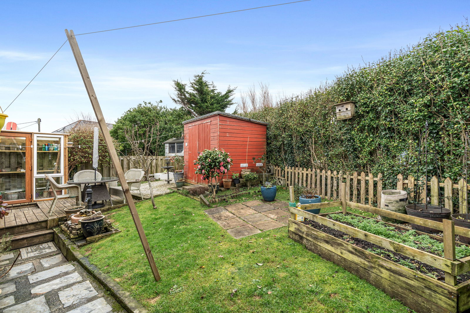 Out in the rear garden there is plumbing and electric in a plastic shed which contains a washing machine and tumble dryer. There is also a larger timber shed and a small timber green house. The rear garden is private a secure with a gated side access round to the front.