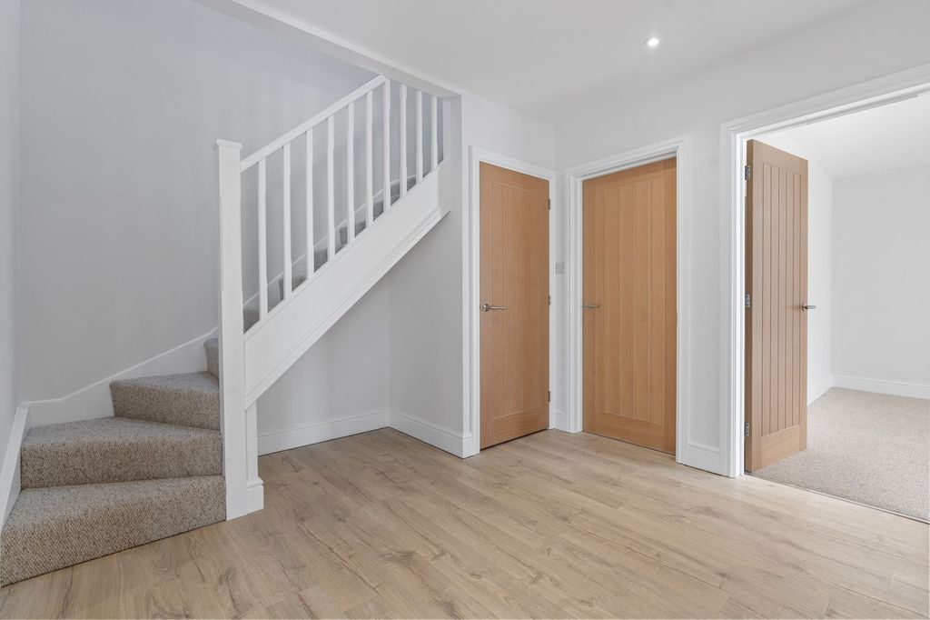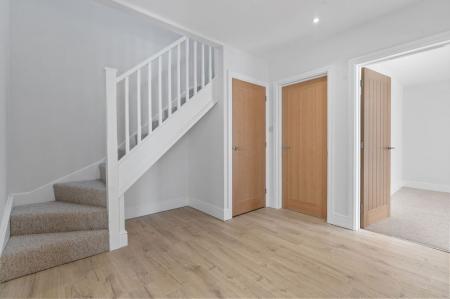 The property has flexible accommodation and works as either a four bedroom property with open plan kitchen / living room or the front ground floor bedroom would also make a separate sitting room if required. The kitchen living room and hallway have a wood effect flooring that continues into the utility room. The kitchen has quartz work tops, ceramic sink, built in oven , induction hob and dish washer. The utility has a 2nd ceramic sink with integrated washing machine and tumble dryer. The master bedroom with bay window on the ground floor has a spacious shower ensuite with electric towel rail and back lit mirror. There is also a bathroom on the ground floor next to the 2nd bedroom or sitting room, again a spacious room with bay window. All the bedrooms are carpeted and the bath/shower rooms tiled.