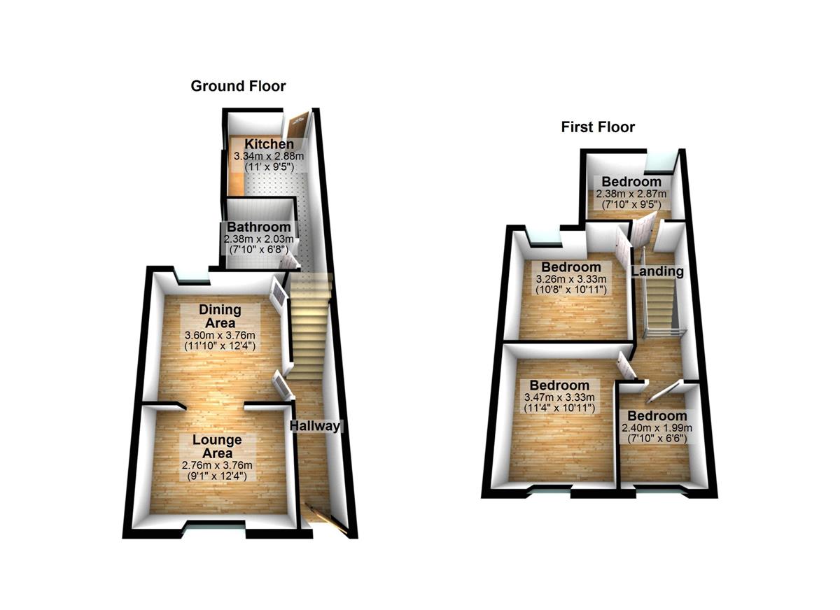 Bedroom 4 w: 2.34m x l: 2.75m x h: 2.3m (w: 7' 8" x l: 9' x h: 7' 7")