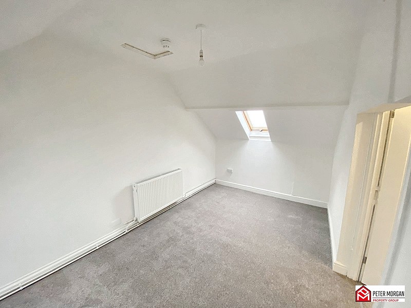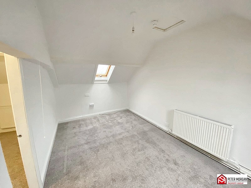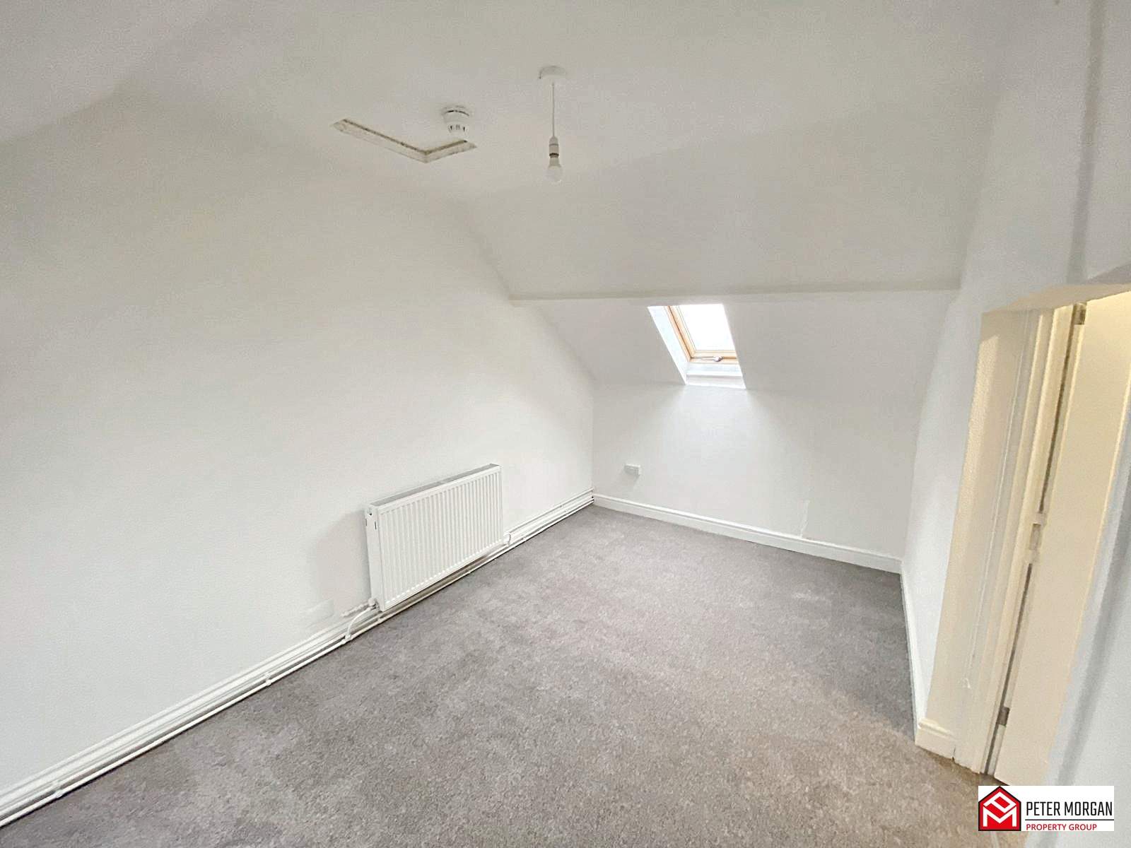 Two Velux windows, carpeted flooring, radiator and access to the loft above.