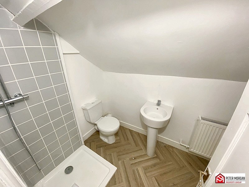 Comprising of a low level WC, pedestal wash hand basin and shower tray with shower over. Cushion flooring and radiator.
