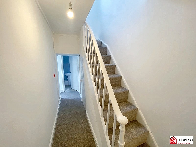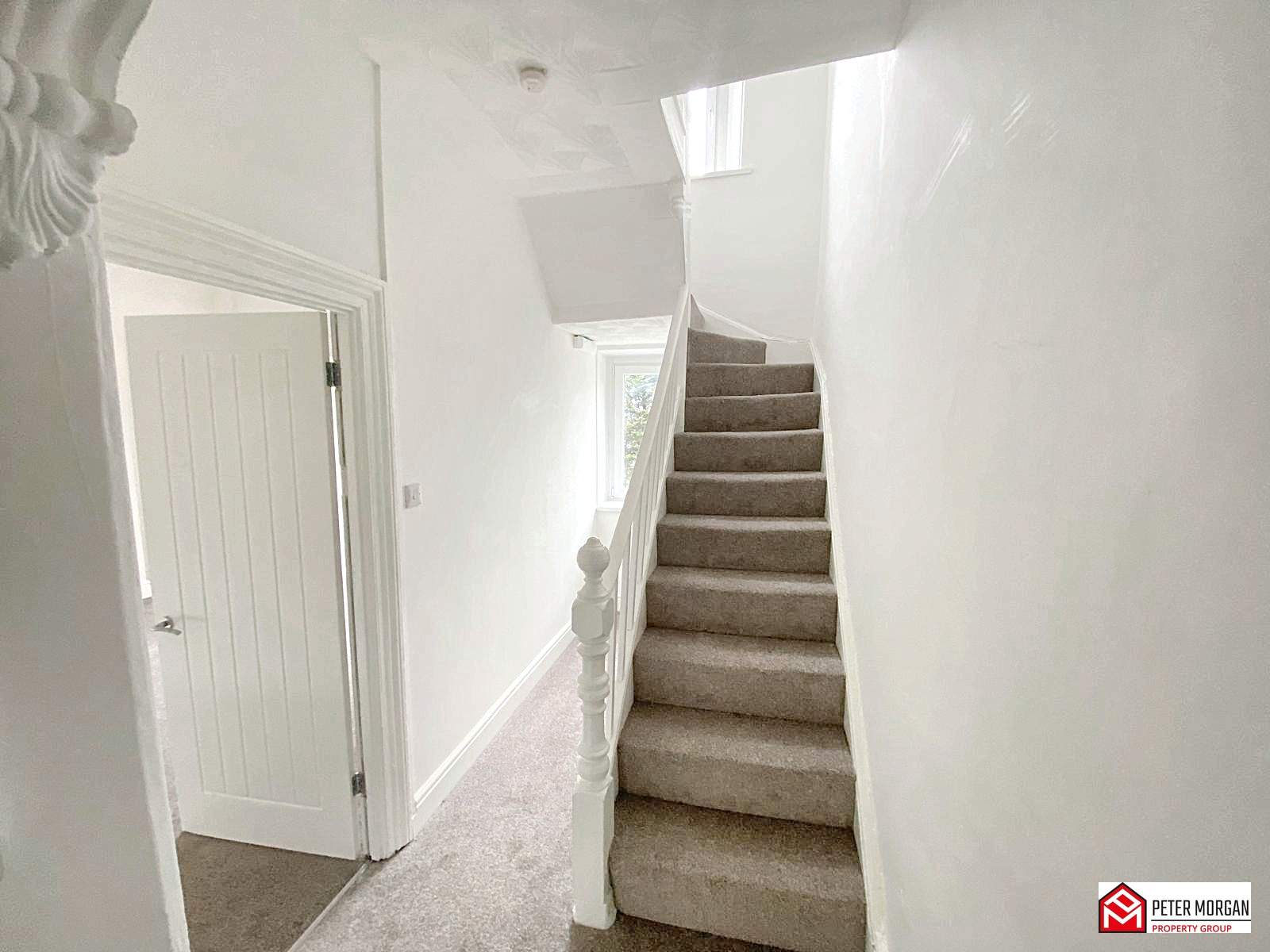 uPVC double glazed window, carpeted stairs to second floor and carpeted flooring.