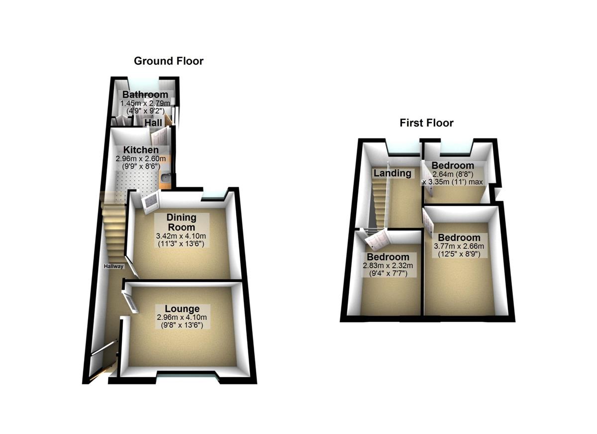 Bedroom 3 w: 2.2m x l: 2.76m x h: 2.5m (w: 7' 3" x l: 9' 1" x h: 8' 2")