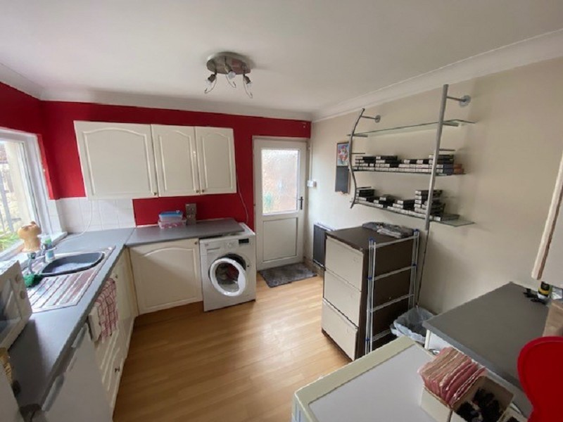 Appointed with a range of matching wall and base units with work tops over and an inset stainless steel sink with mixer tap. uPVC double glazed window to the rear aspect, plumbing in place for a washing machine and a cupboard housing a boiler serving domestic hot water and gas central heating.
