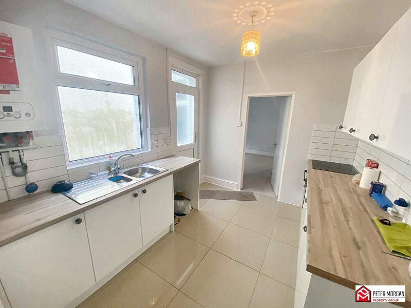 Newly fitted kitchen appointed with a range of matching wall and base units with work tops over and inset stainless sink with mixer tap. uPVC double glazed window, integrated oven, hob, plumbing in place for washing machine, tiled flooring and radiator.