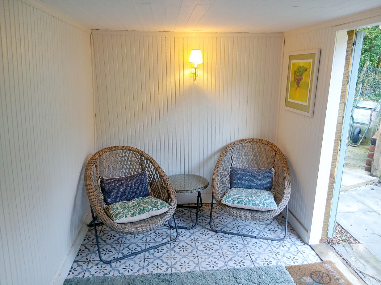 "In the summer, we spend the majority of our time working in the garden or relaxing in the little building that's home to an amazing grapevine. The kitchen / dining room lends itself well to gatherings as it's spacious enough for us to cook and have everyone in there with us. The lounge is another lovely room, especially in winter when the wood burning fire is lit, and you can't beat an early morning coffee sitting on the sun deck."