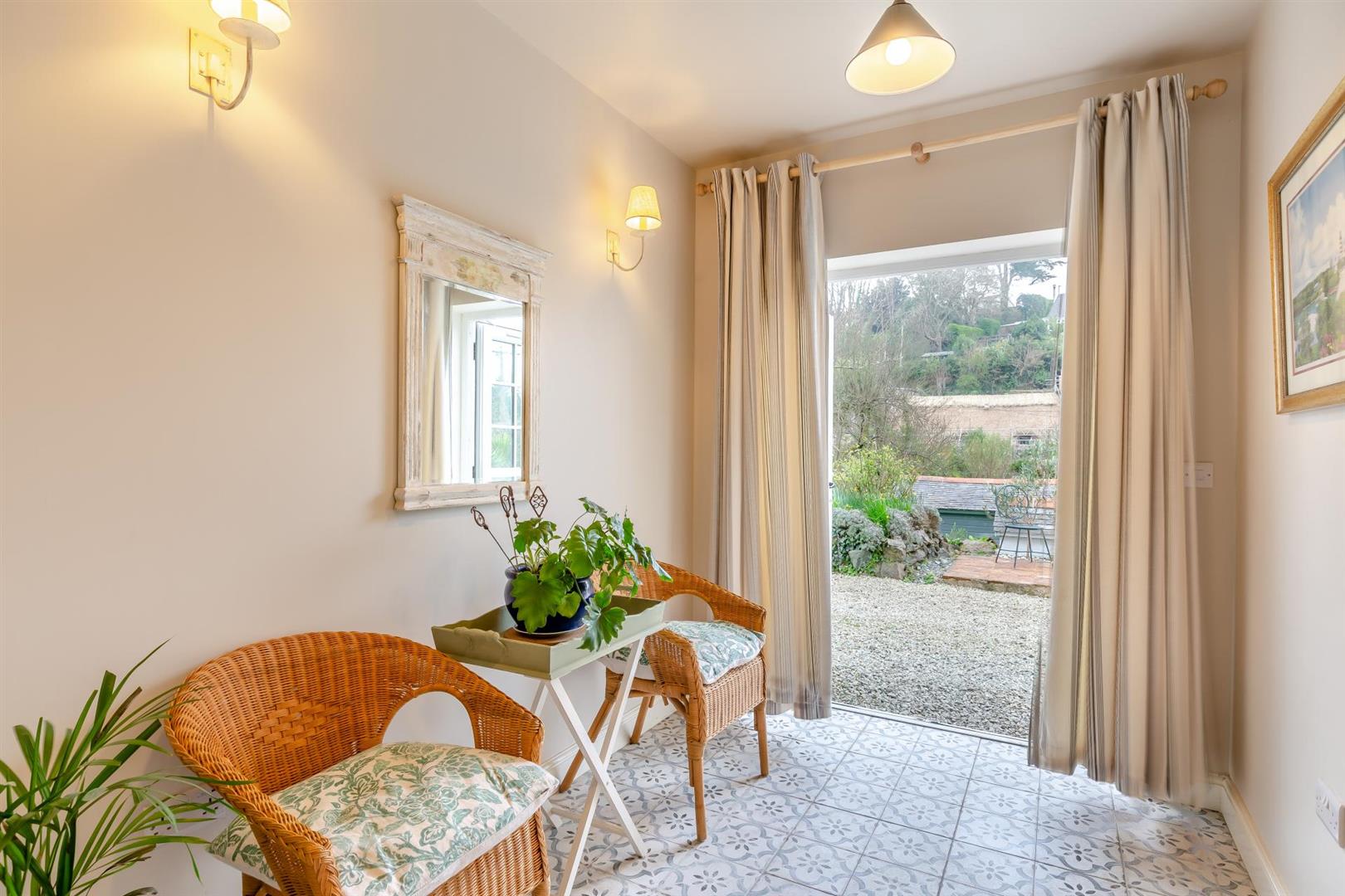 Breakfast Room - With part glazed French doors opening to the front aspect, mounted wall-lights and stylish patterned floor tiling. Door to