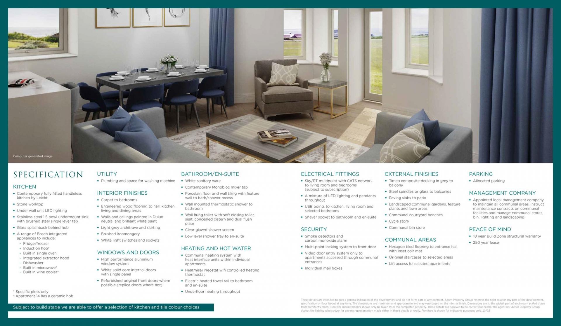 Modern conveniences include CAT6 network points (subscription required), LED and pendant lighting, USB sockets, and a video entry system. Residents benefit from allocated parking, lift access to selected apartments, and access to landscaped communal gardens, a cycle store, and a bin store. The development is managed by a local company and includes a 10-year structural warranty and a 250-year lease for complete peace of mind.