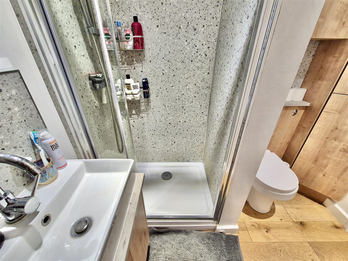 Shower Room - Comprising a shower cubicle with both rain and flexible shower heads, wash basin with cupboards under and a mixer tap over, close coupled W.C. with concealed cistern. There are an array of cupboards.