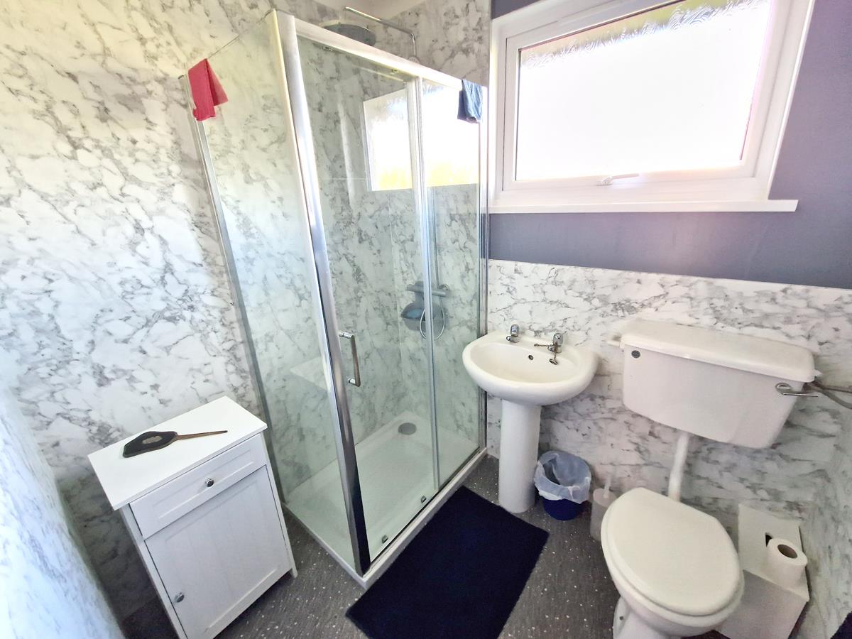 Shower Room - Comprising a low level w.c., pedestal wash basin and shower cubicle with both rainforest style and flexible shower heads.