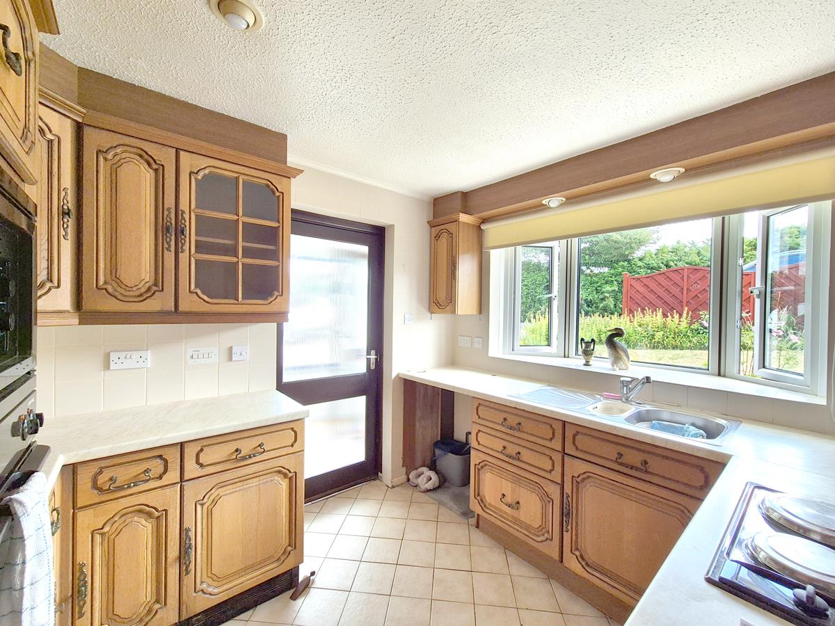 Kitchen - 2.97m x 2.51m (9'9" x 8'3") - Comprising working top surfaces incorporating a one and a half bowl sink unit with drainer and a mixture tap over, cupboards and drawers under and wall cupboards over. There is a built-in oven and space for a microwave, hob with hood over, a space for a washing machine and the room has tiled walls. There is an airing cupboard which houses a water tank with immersion heater and an outlook to the front.
