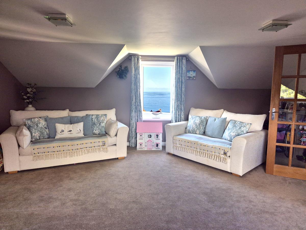Sitting Room/Bedroom Five - 5.94m x 5.59m minus door recess (19'6" x 18'4" - A dual aspect room with outlook over open countryside and over other properties out to sea. This room is currently utilised as a sitting room but could be used as an additional bedroom.
