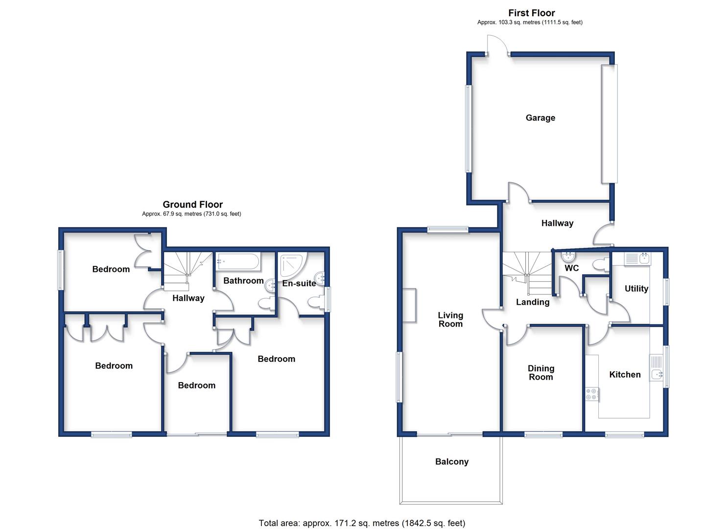 In brief, the accommodation comprises an entrance hall with access to the garage, on the first floor is a lounge, dining room, kitchen, utility room and w.c. On the ground floor is a bathroom and four bedrooms, the master of which benefits from an en-suite. To the outside, the property is cradled by its garden which are mainly hard landscaped for ease of maintenance and provide patio areas to sit back and enjoy the fine outlook. To the front is a driveway which provides parking for a number of vehicles and leads to a double garage.
