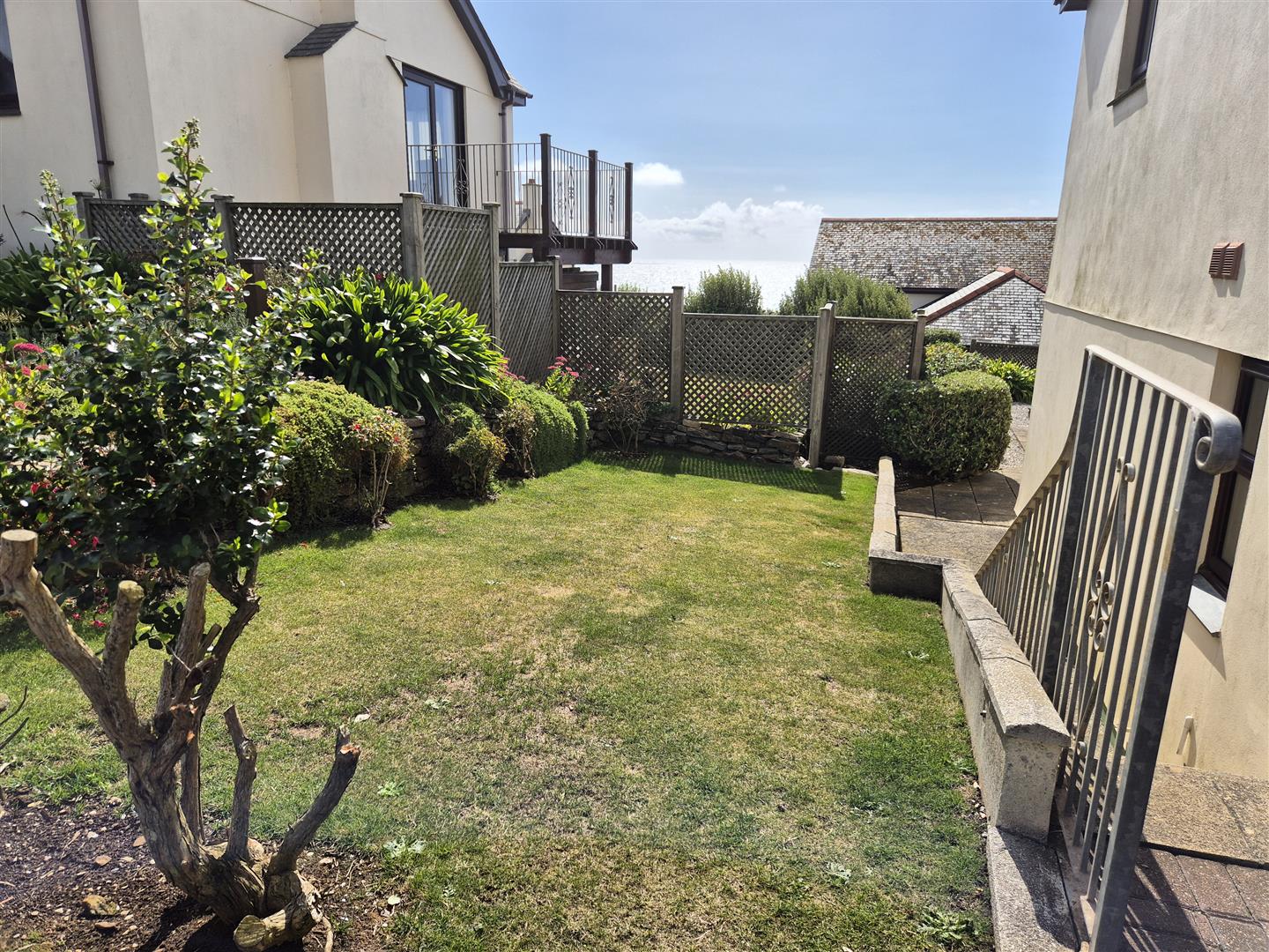 Outside - The outside space is a real feature of the property, with gardens cradling the main residence and providing many vantage points to enjoy the fine outlook. The gardens are mainly hard landscaped for ease of maintenance and with flower beds.