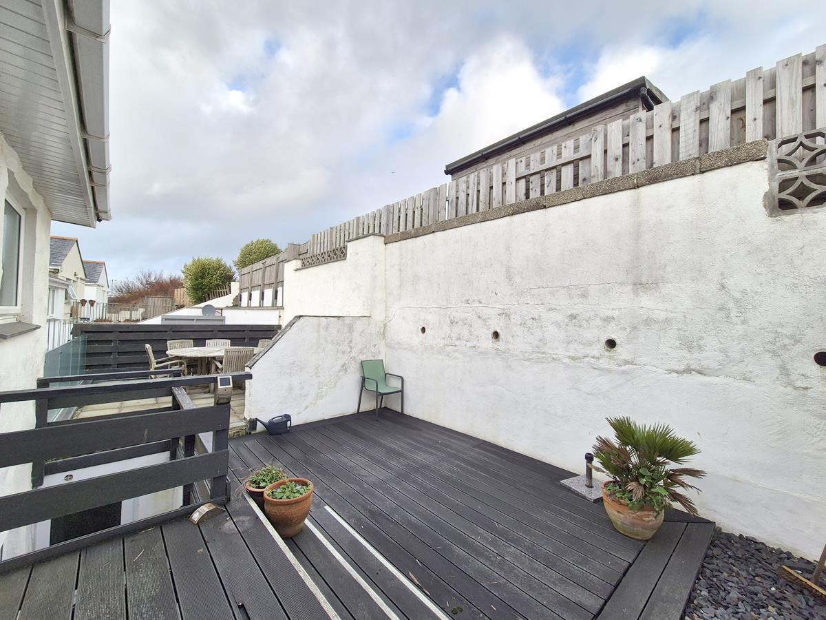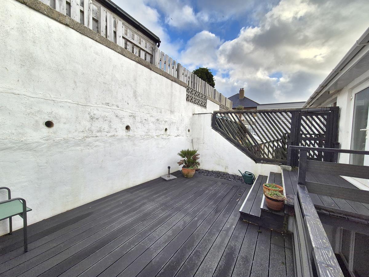 Outside - To the rear of the residence is a good size decked area and steps lead up to a further patio area which would seem ideal for alfresco dining. Sea views can be enjoyed from the patio area.