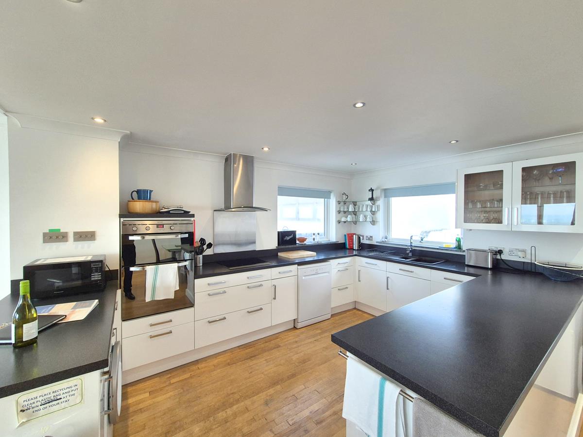 Lounge/Kitchen/Diner - 8.99m x 5.33m (29'6" x 17'6") - A fabulous open plan lounge, kitchen, diner which is triple aspect allowing one to take full advantage of the breathtaking sea and coastal views. Bifold doors open onto the balcony area which as previously mentioned would seem ideal for a morning coffee enjoying the marine vistas. French doors open onto the rear courtyard and a wood burner on an attractive hearth acts as a focal point for the room. There is access to the loft.