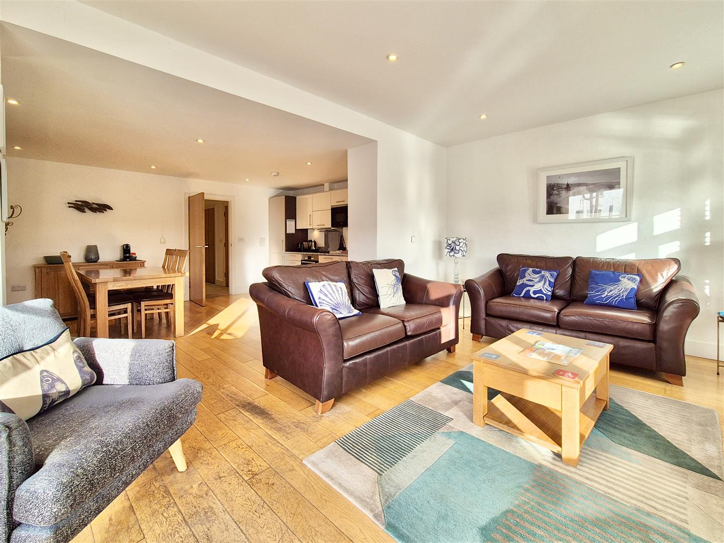 Lounge / Kitchen /Diner - 7.80m x 5.18m (max measurements) (25'7" x 17' (max - A fabulous open plan room enjoying stunning views across the harbour and village beyond. The room has wood effect flooring, recessed spotlighting and enjoys a dual aspect with twin windows providing direct harbour views to the front whilst a large picture window, to the side, provides further views over the harbour. Opening to