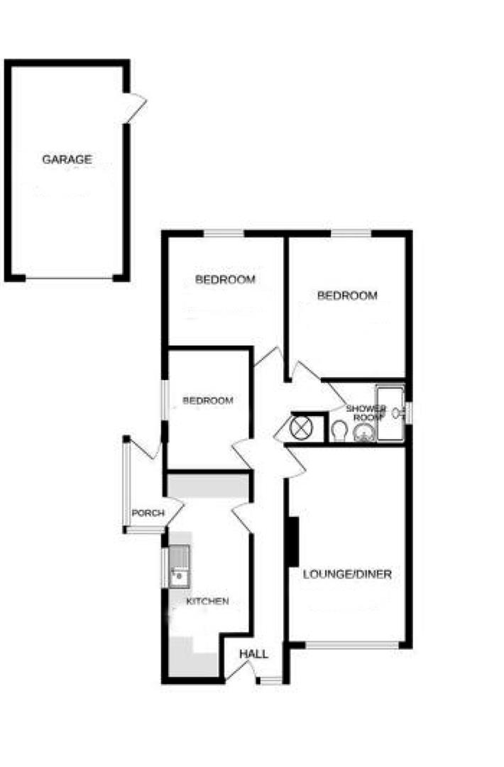 Inside, the accommodation includes a kitchen/breakfast room, a useful side porch, a light lounge with a large picture window to the front, three bedrooms, and a recently refitted shower room. The gardens are designed to be low maintenance, with the rear garden safely enclosed, ideal for children and pets, while a driveway and garage provide convenient parking and storage.