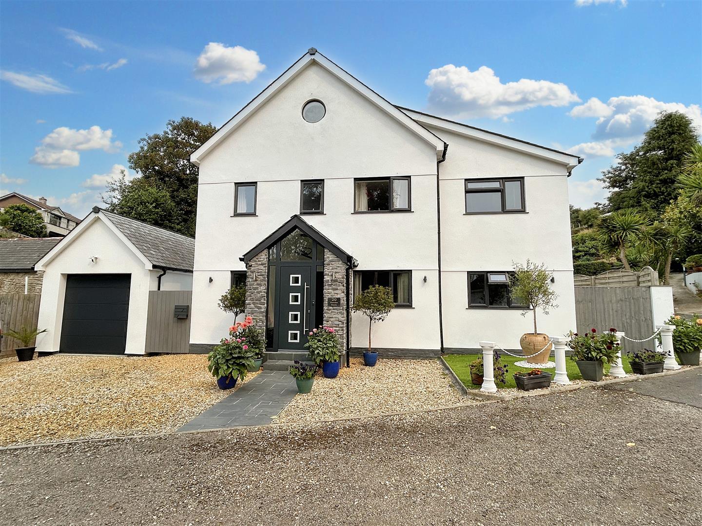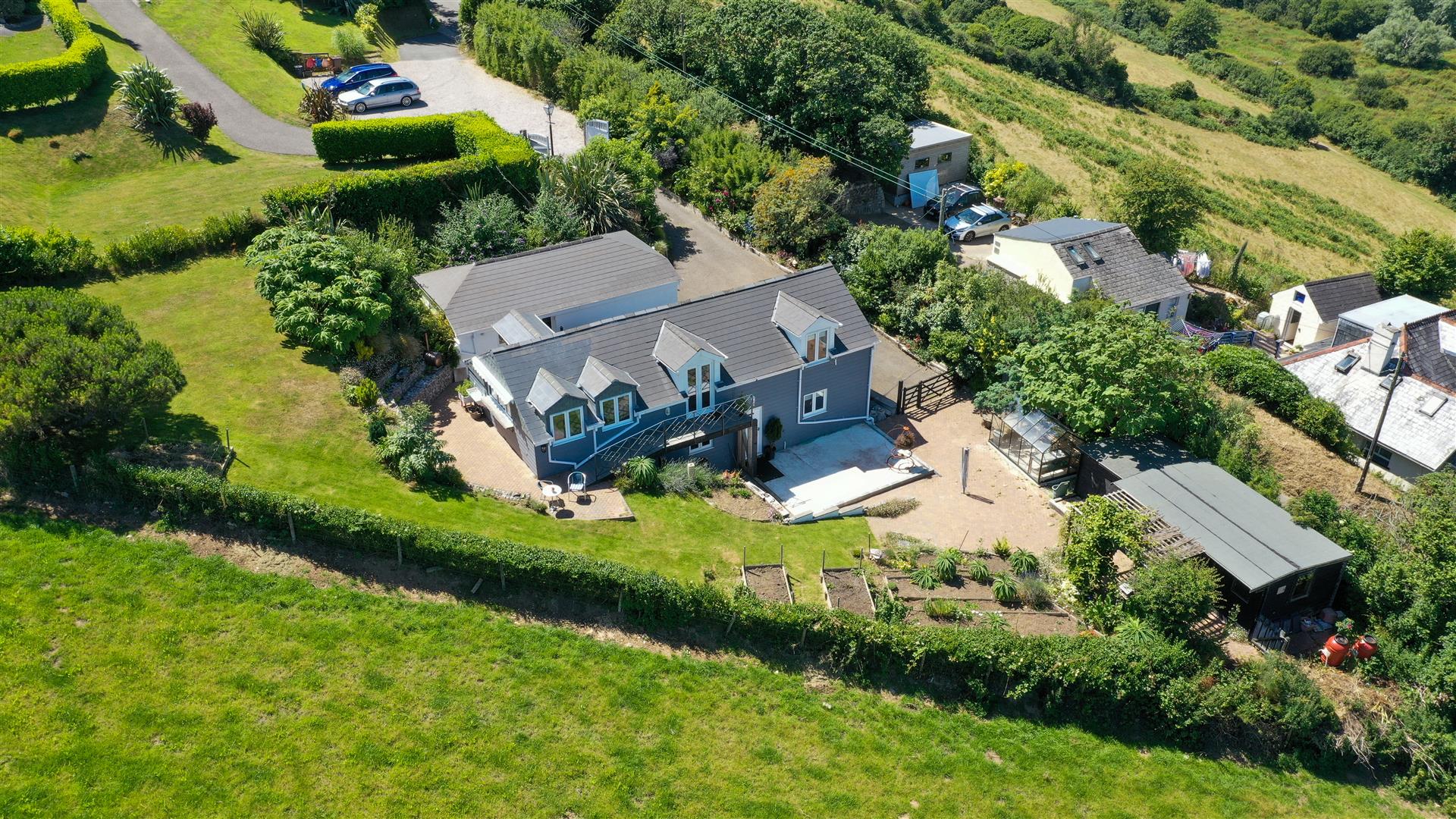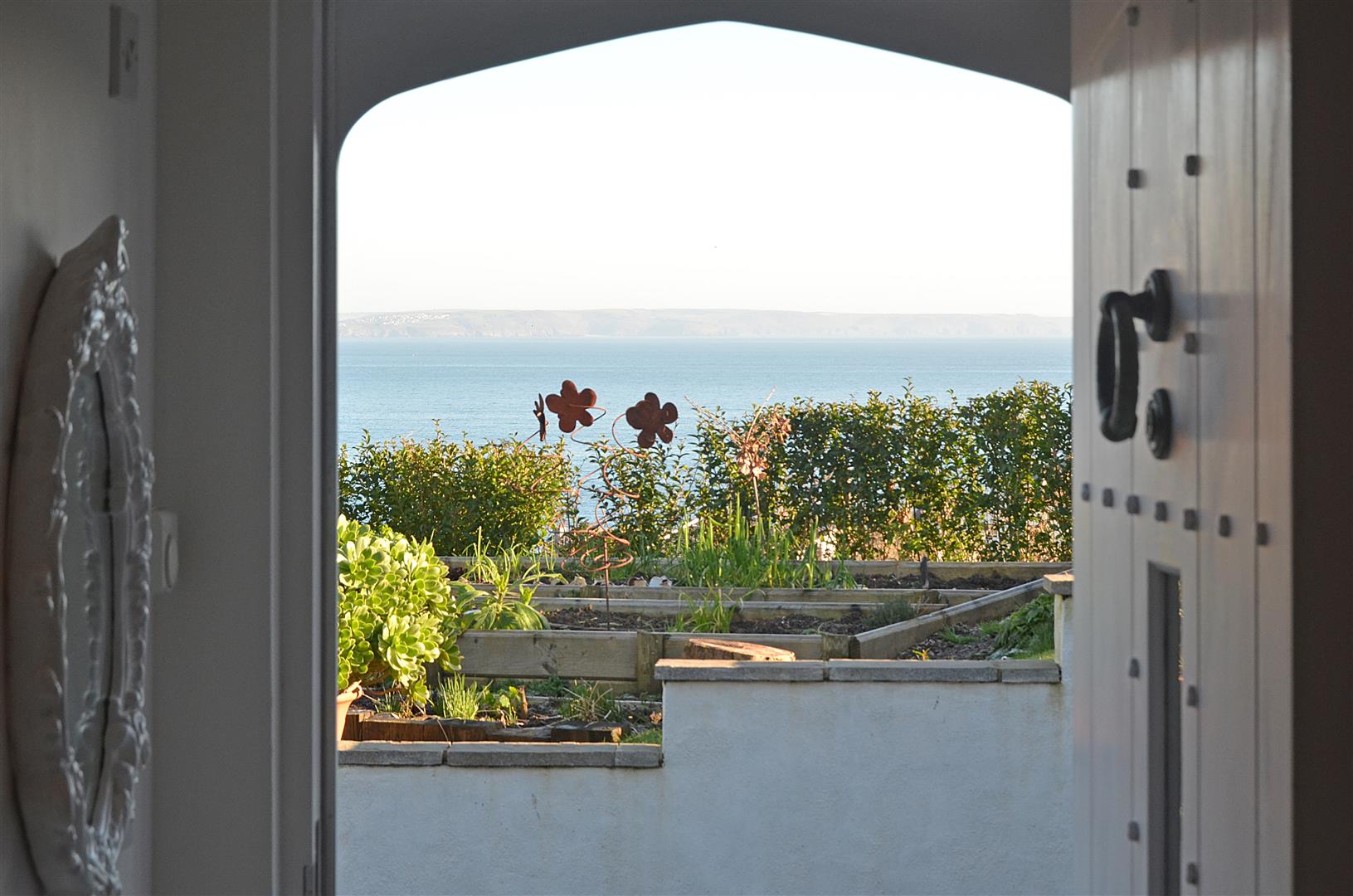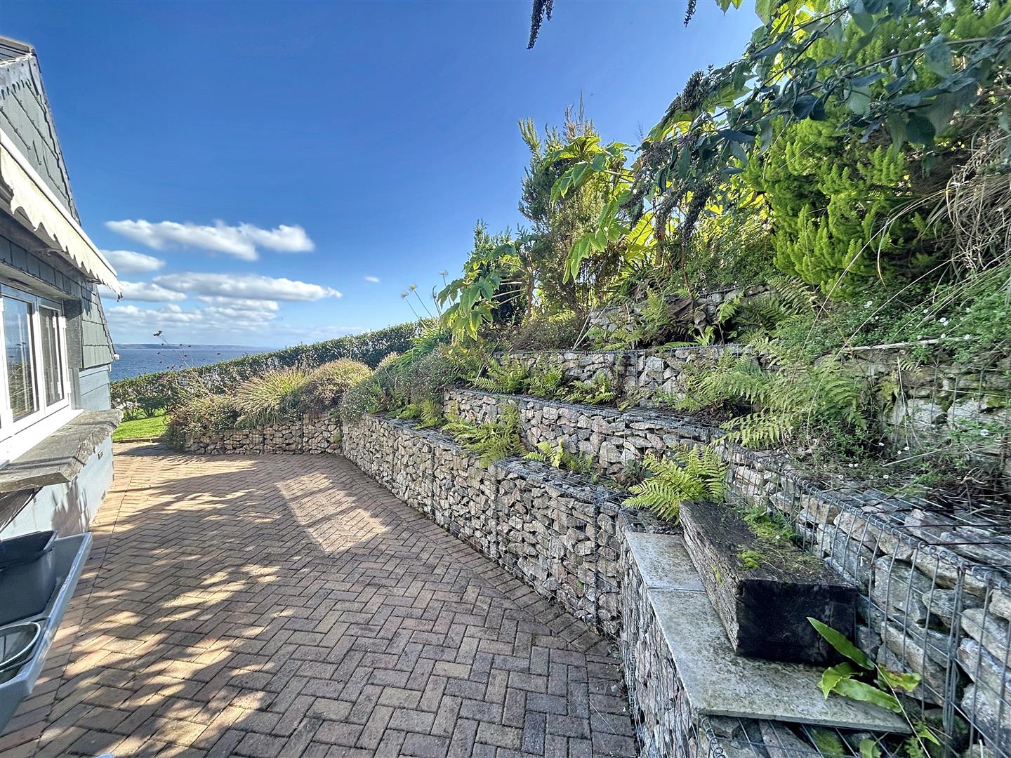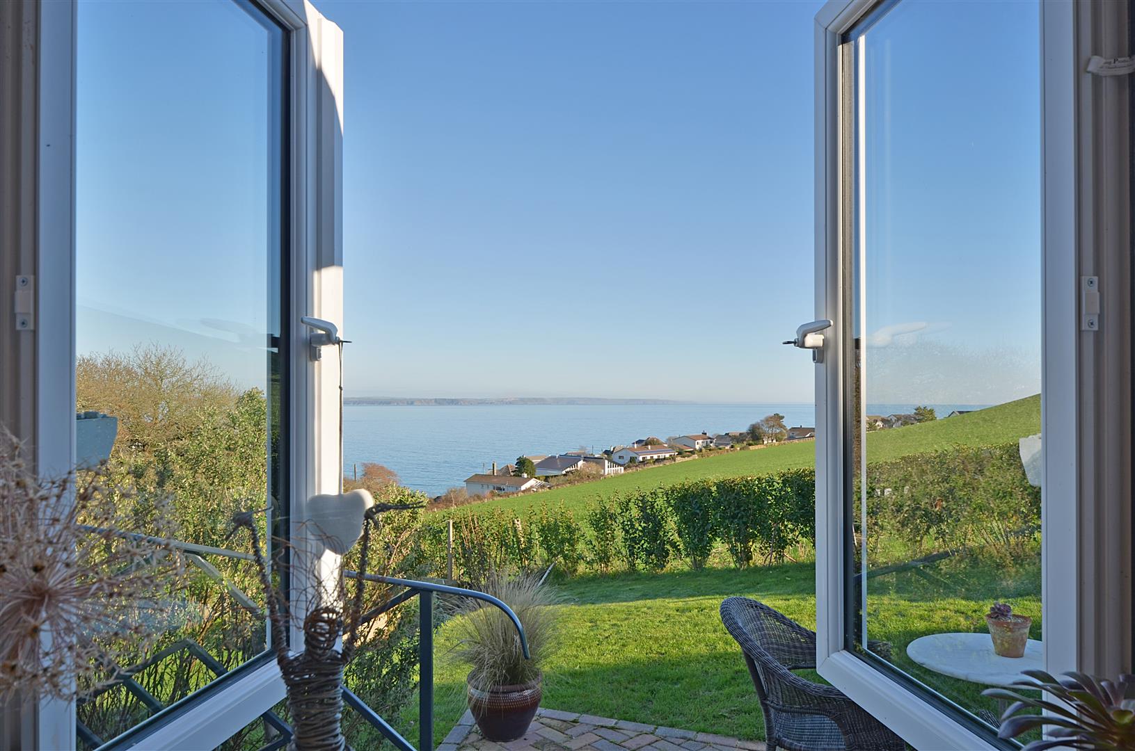 Gardens - The gardens and grounds are a real feature of the property and have been landscaped to take full advantage of the magnificent far reaching coastal views. The gardens enjoy complete privacy and a warm south facing aspect guaranteeing sun all day. Not only do they enjoy sea views but the rear and side gardens back onto open countryside with pleasant rural views. Along the driveway is a deep mature flowerbed with bamboo providing privacy, Mimosa, Magnolia and even a Burnt Sugar Tree. A pathway leads via a gate to the kitchen door past a log store and outside tap. The path continues to the west facing brick paved terrace which is sheltered and perfect for entertaining and barbecues. A composite decked path leads from here to the front entrance. The side garden enjoys stunning views and backs onto fields. A gently sloping lawn leads up to a larger lawn which has the best of the sea views. There are several raised vegetable beds, fabulous greenhouse and useful store at the front of the house and many outside lights. The foundations and concrete pad for the extension have already been completed so the build will be quick and non intrusive to the wonderful gardens.