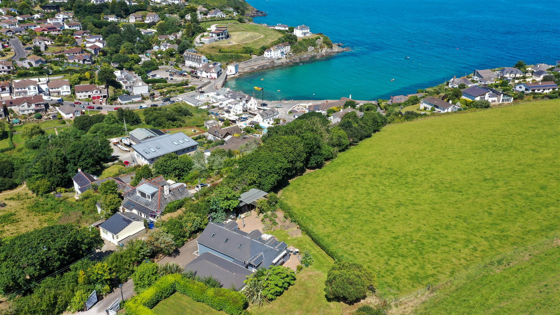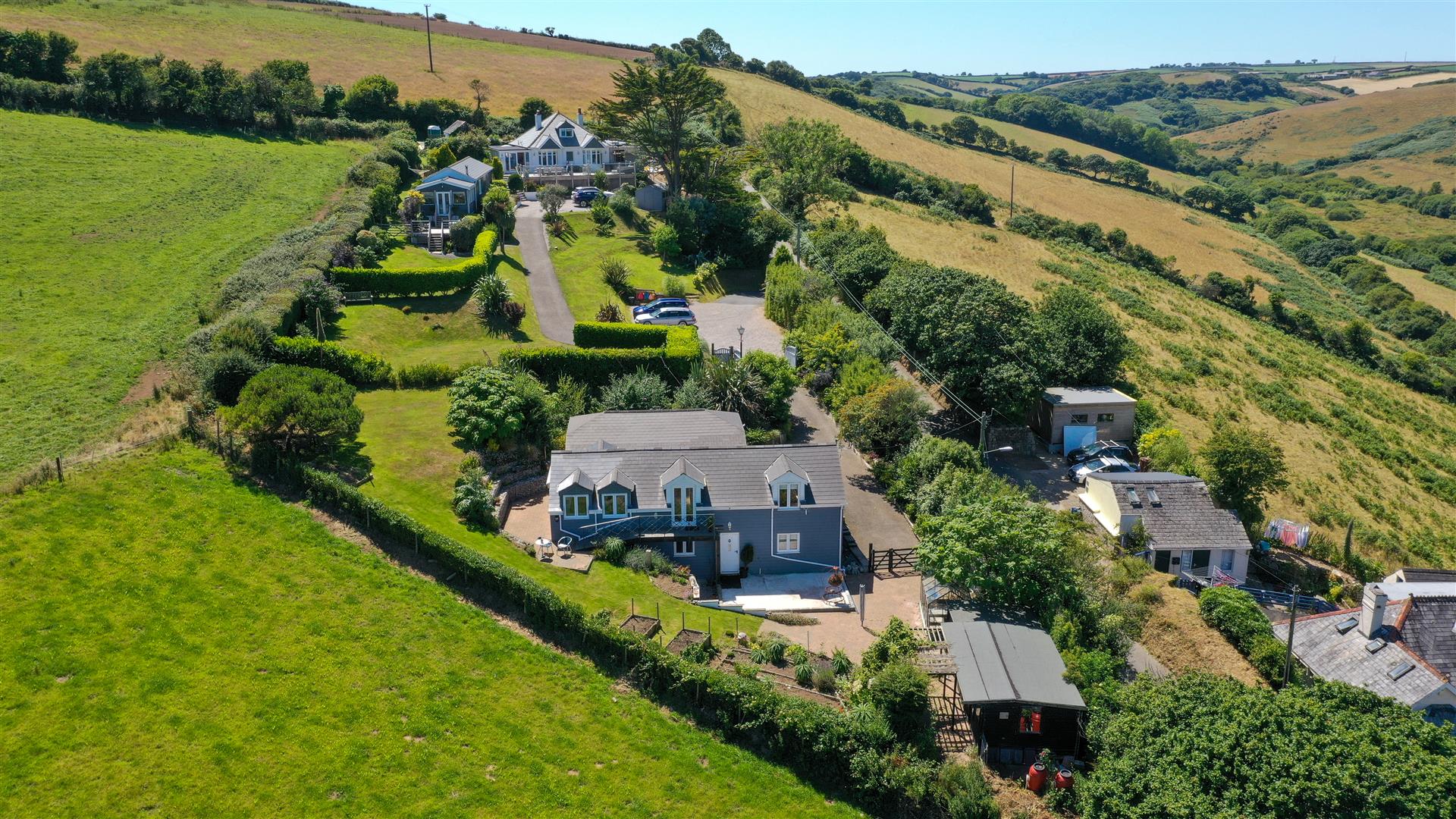 Outside - Kittiwake is approached from Bodrugan Hill and a gravel driveway leads to the electric double entrance gates that open into a brick driveway where there is parking for four cars and access to the garage/workshop. There is parking for a motorhome/caravan etc on the owned drive before the entrance gates.