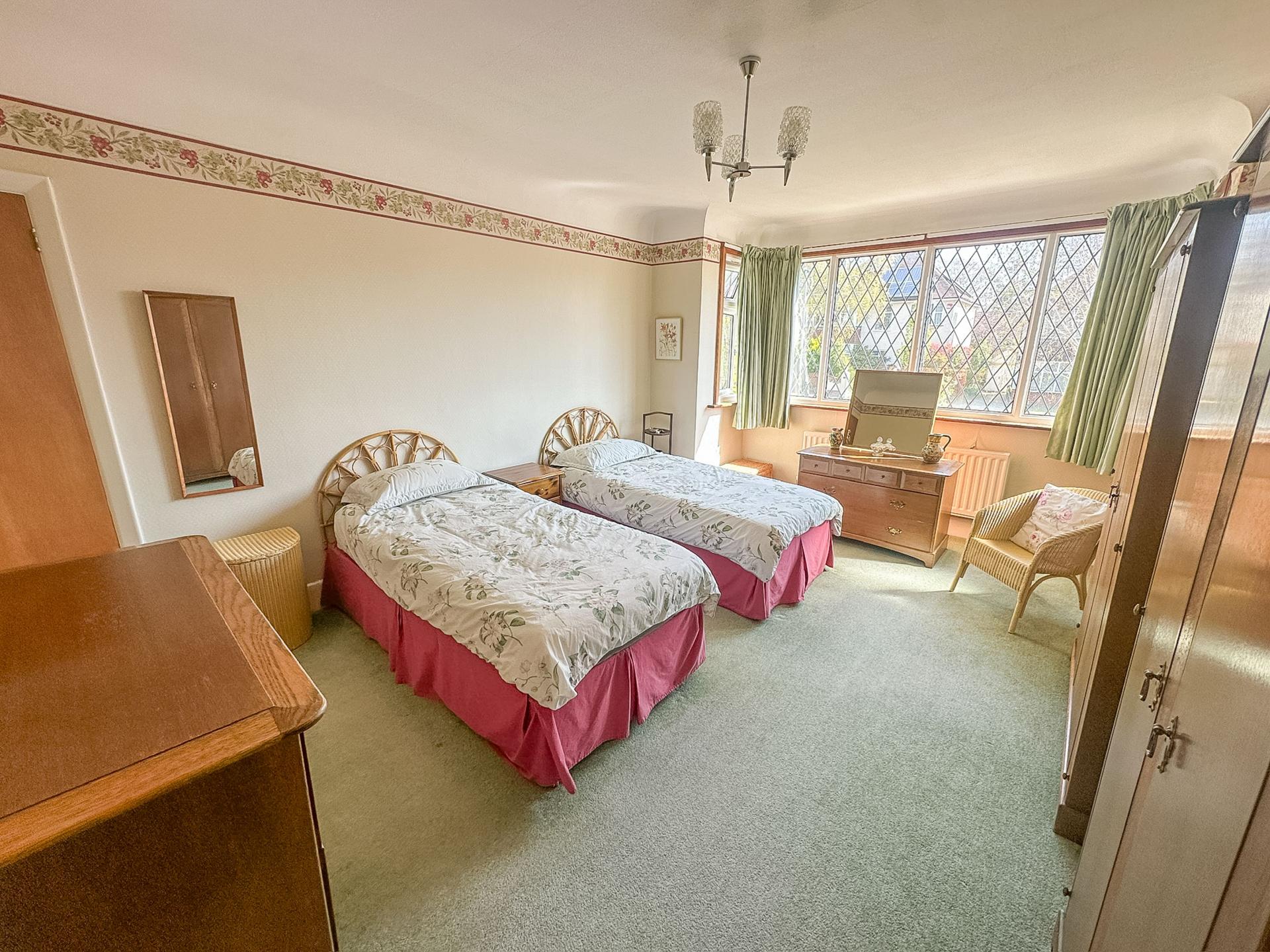 BEDROOM 2 15' 0" x 12' 10" (4.57m x 3.91m) Large double-glazed window to rear aspect overlooking garden, radiator, ceiling coving.
